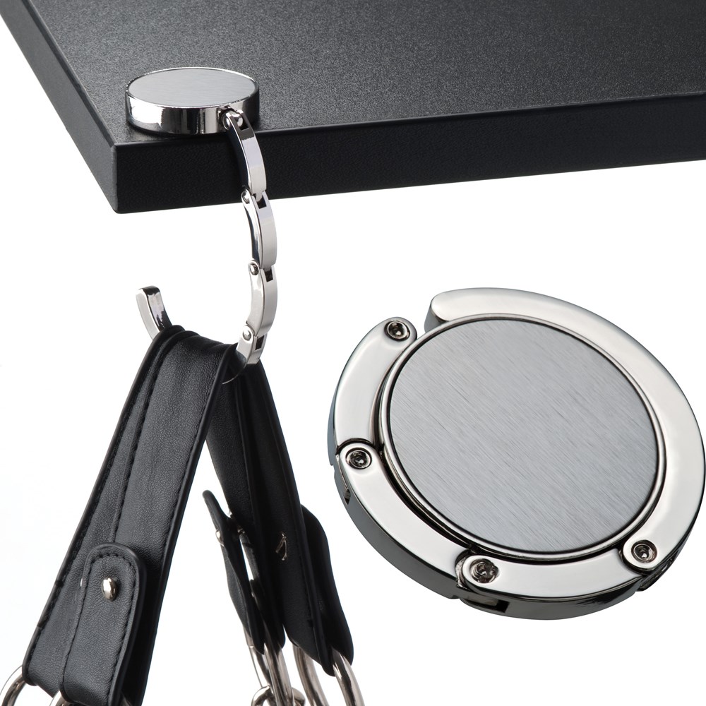Handtaschenhalter schützt Ihre Tasche vor schmutzigen Böden und bösen Langfingern. Ihre Werbung bringen wir mittels Lasergravur mittig auf dem Handtaschenhalter an.