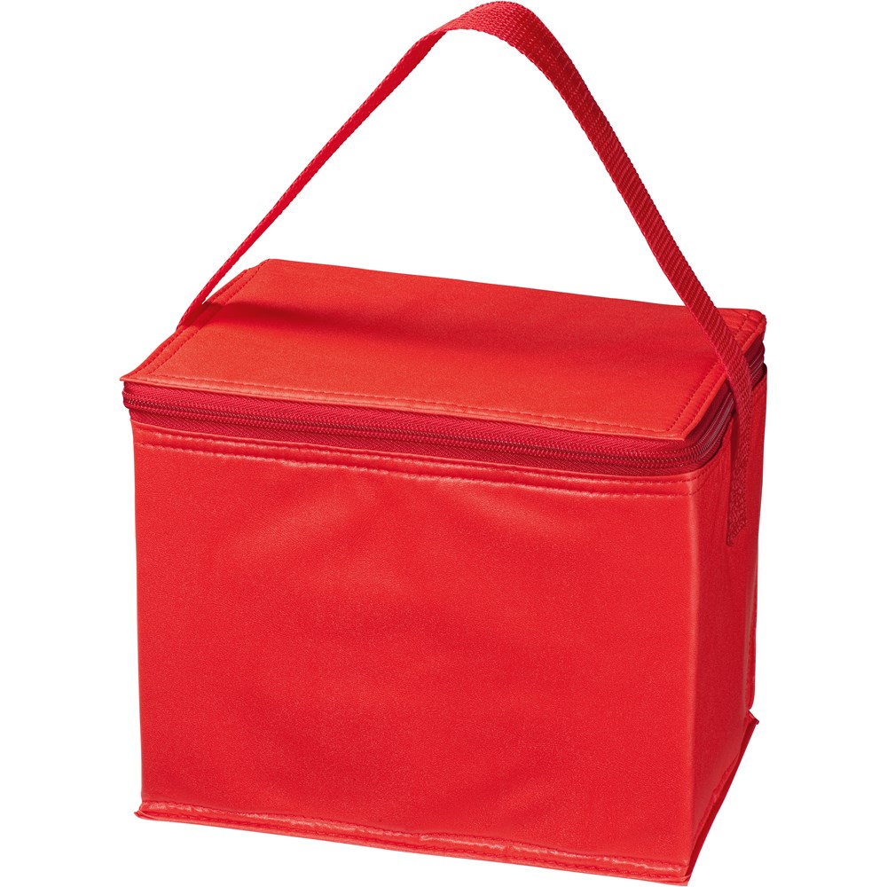 Kühltasche aus 70D Polyester. Platz für sechs große Dosen oder sechs kleine Flaschen je 500ml. Ihre Werbung drucken wir mittig auf den Deckel.