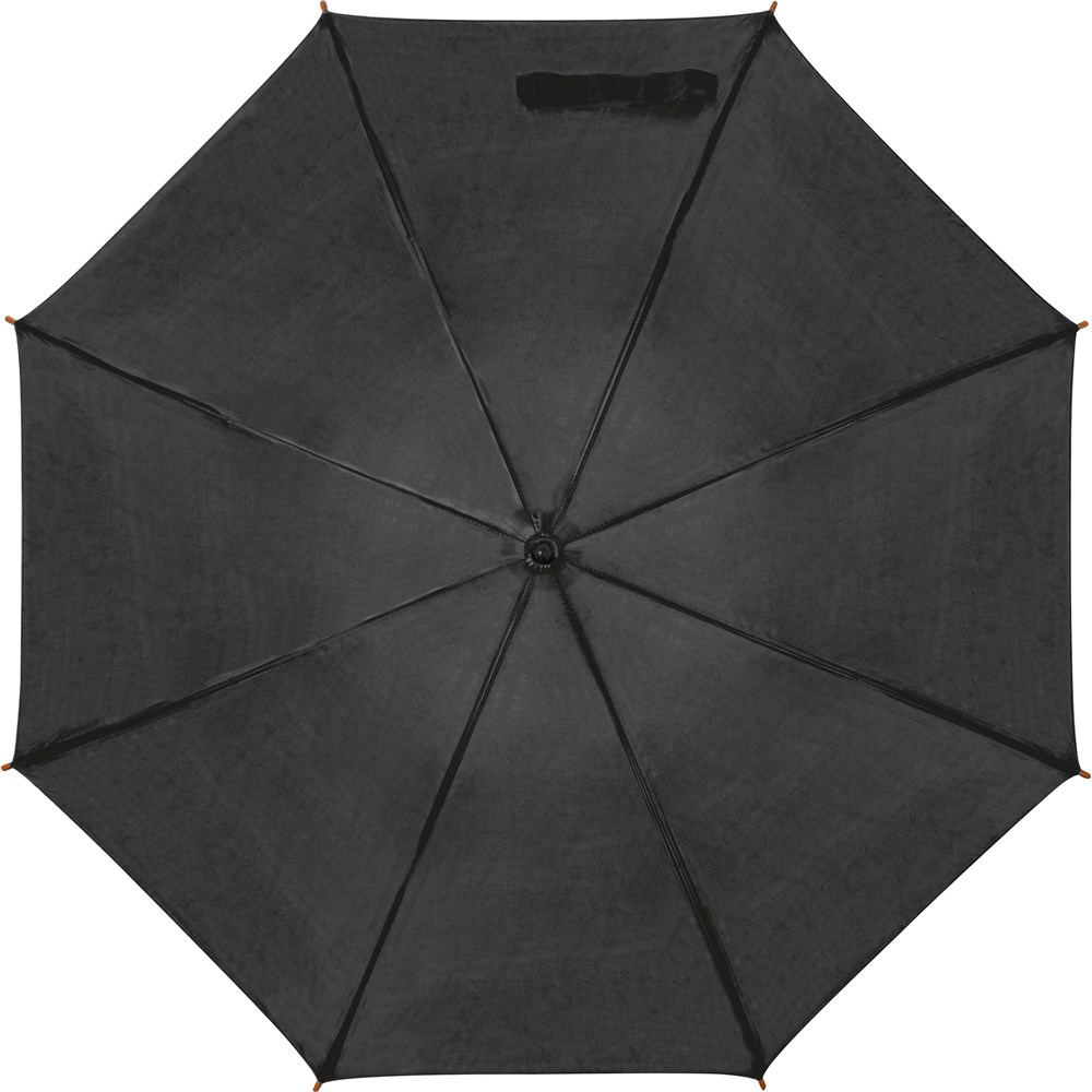 Der Klassiker, Automatikregenschirm mit 190T Polyesterbespannung, Echtholzschaft u. -griff sowie einem Metallgestänge mit Hochleistungsautomatikfeder. Ihre Werbung drucken wir auf ein Segment.