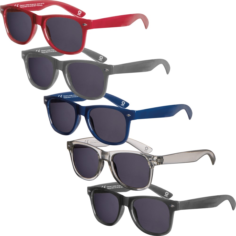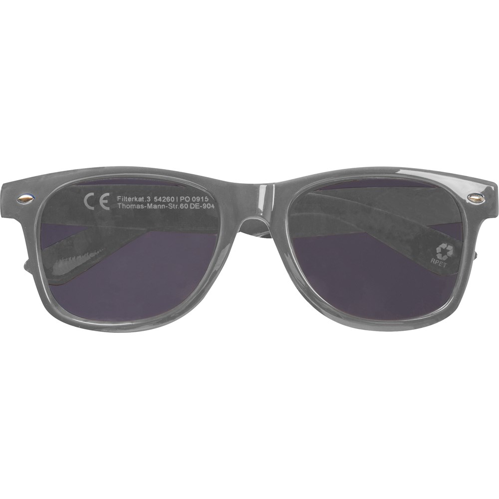 Sonnenbrille aus recyceltem PET mit UV 400-Schutz und CE-Filterkategorie 3. Umweltfreundlich und stilvoll, bietet zuverlässigen Schutz vor schädlichen UV-Strahlen. Ihr Werbung drucken wir auf einen Bügel.
