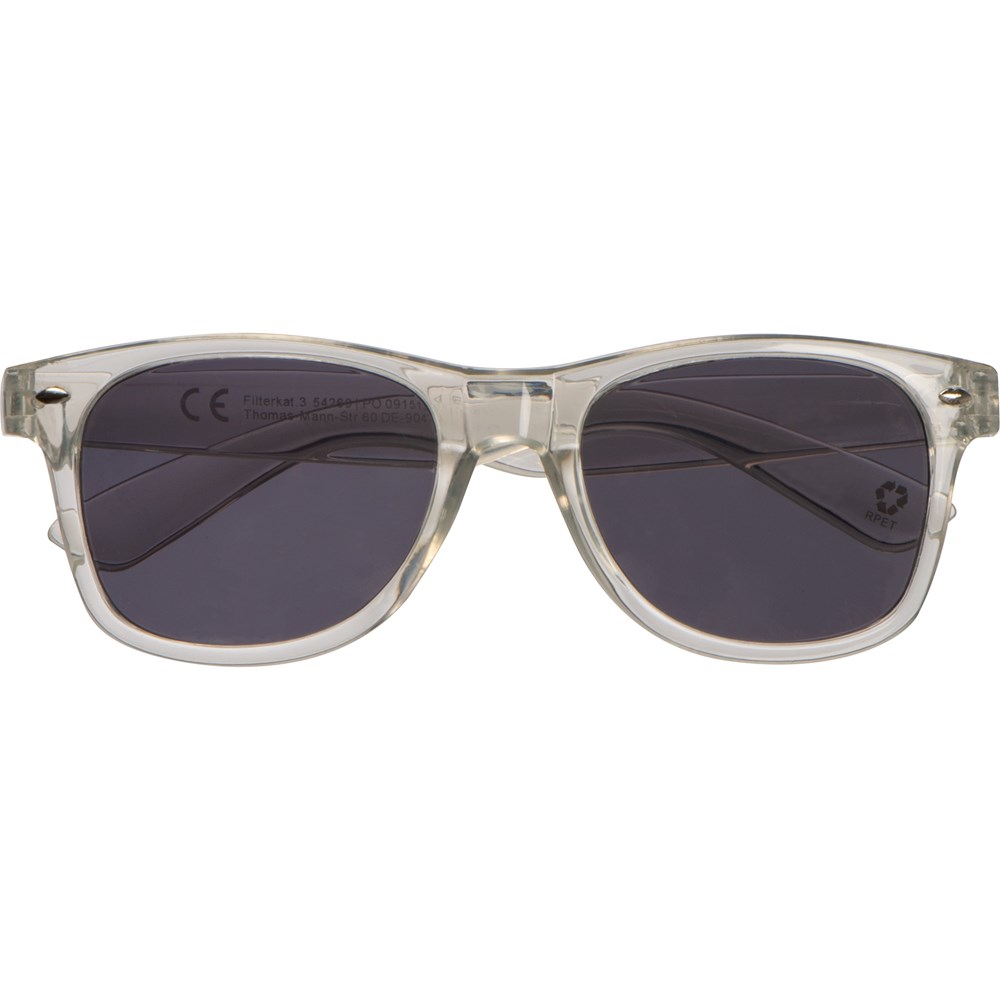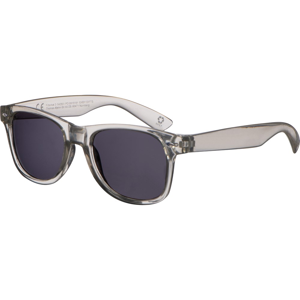 Sonnenbrille aus recyceltem PET mit UV 400-Schutz und CE-Filterkategorie 3. Umweltfreundlich und stilvoll, bietet zuverlässigen Schutz vor schädlichen UV-Strahlen. Ihr Werbung drucken wir auf einen Bügel.