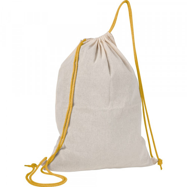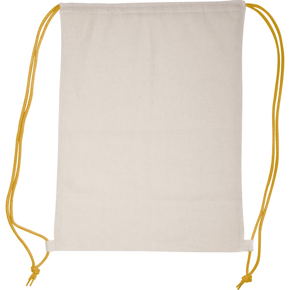 Oeko-Tex® STANDARD 100 zertifizierter Sportbeutel aus Baumwolle (Grammatur 140 g/m²) mit extra dicken Kordelzügen. Ihre Werbung drucken wir auf eine Seite der Tasche.