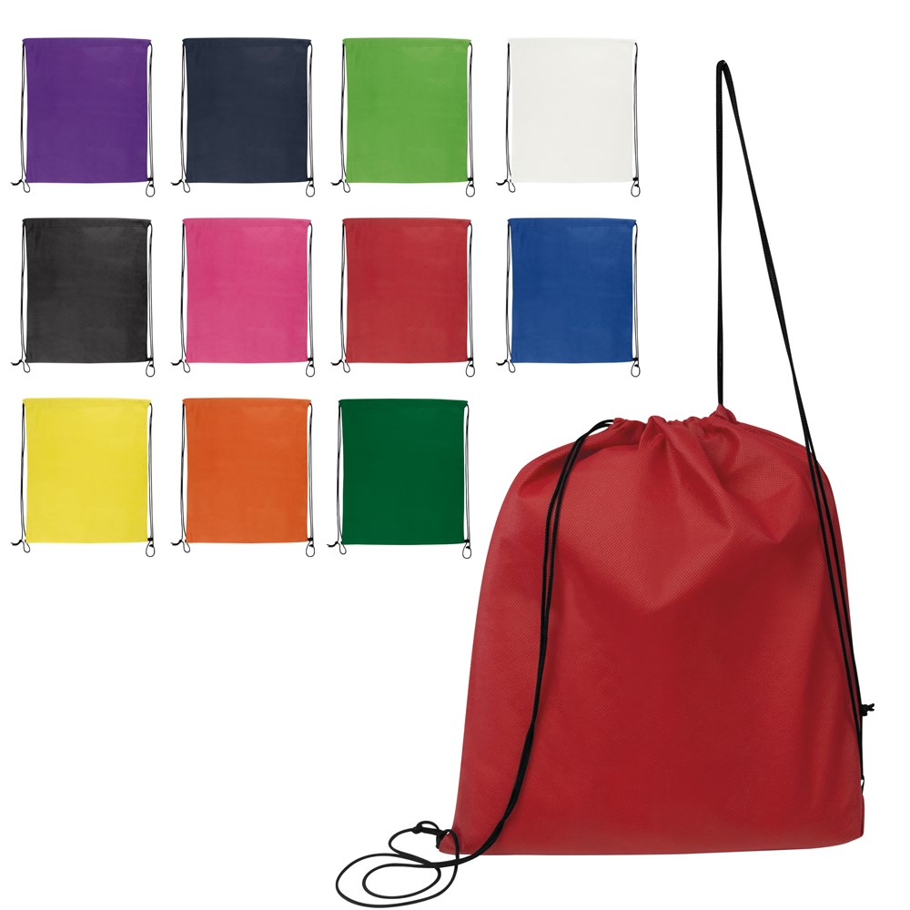 Der Sportbeutel aus Non Woven bietet unzählige Einsatzmöglichkeiten: vom Turnbeutel bis zum Wäschesack. Der Kordelzug dient gleichzeitig auch als Trageriemen. Ihre Werbung drucken wir großflächig auf eine Seite.