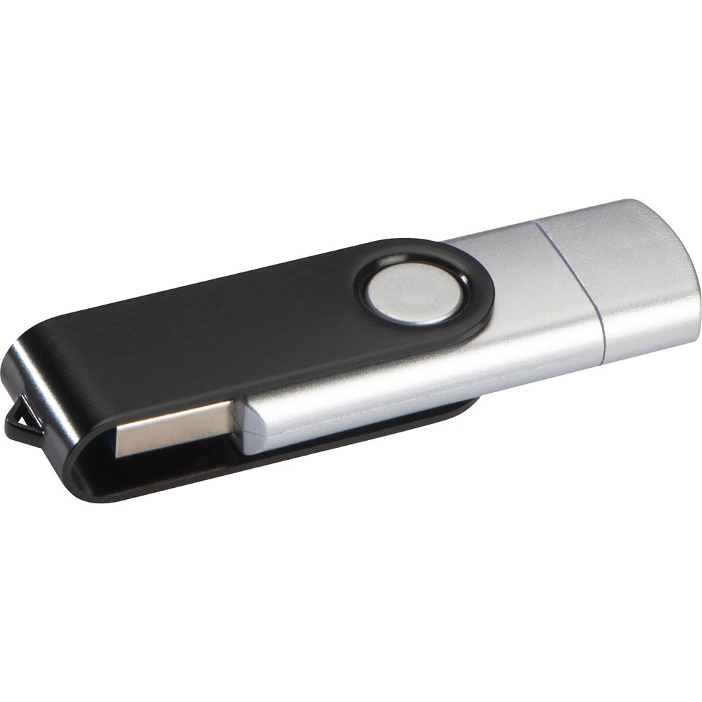 USB-Stick 3.0 mit einem USB Typ A und einem USB-Typ B Anschluss und einer Speicherkapazität von 32GB. Ihre Werbung wird auf die Klammer gelasert. Bei Lieferungen innerhalb Deutschlands fallen GEMA Gebühren von € 0,24 an.