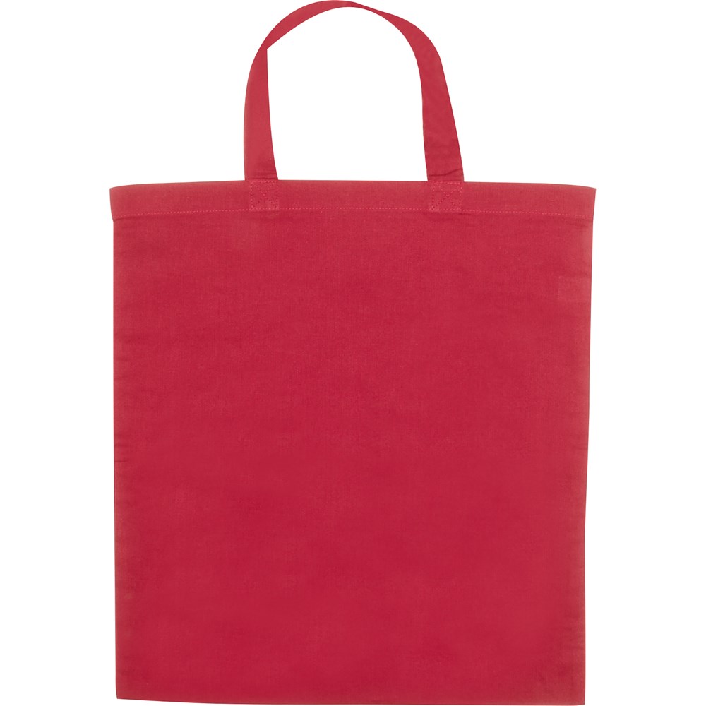 Oeko-Tex® STANDARD 100 zertifizierte Tasche aus Baumwolle mit einer Grammatur von 140 g/m² und kurzen Henkeln. Ihre Werbung drucken wir auf eine Seite.