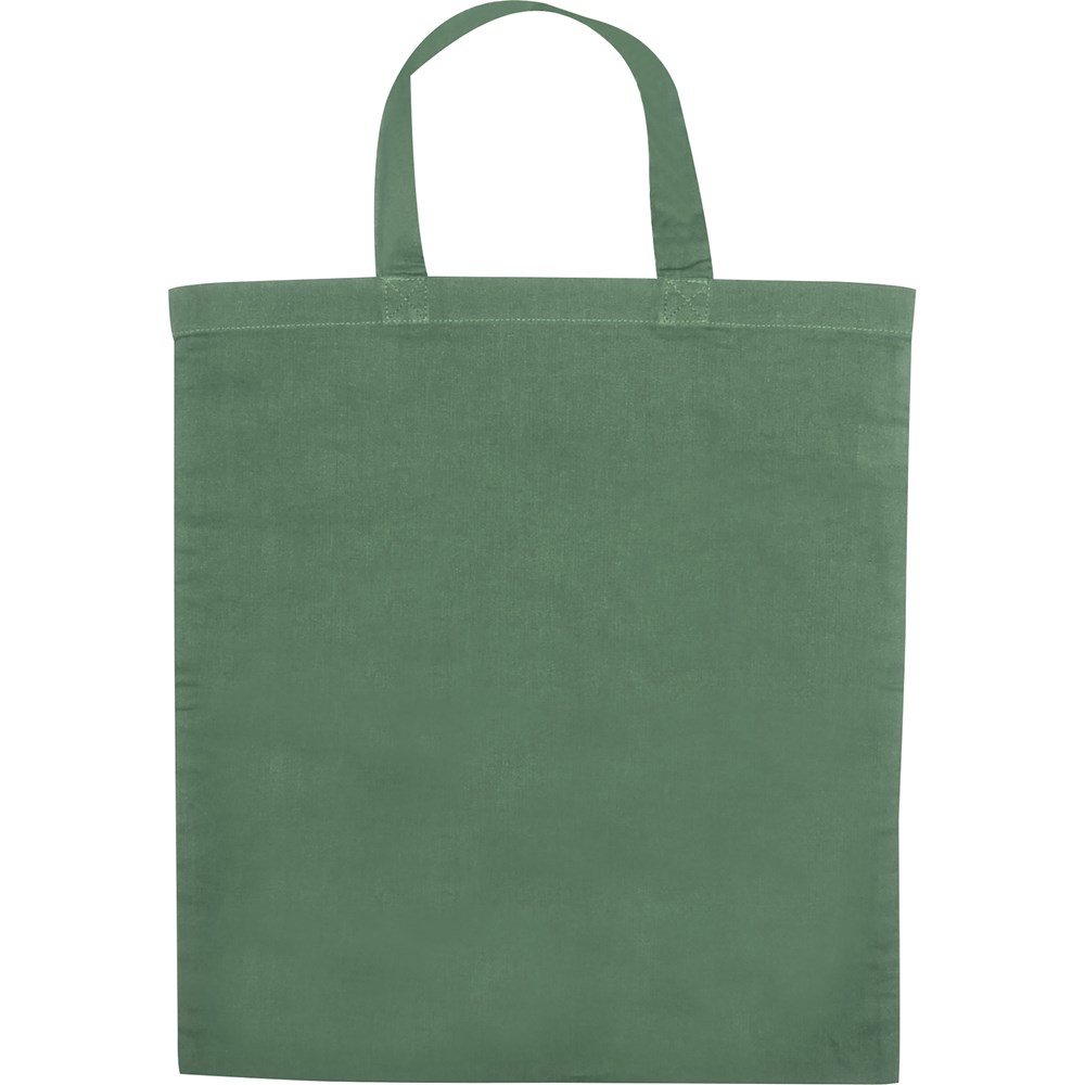 Oeko-Tex® STANDARD 100 zertifizierte Tasche aus Baumwolle mit einer Grammatur von 140 g/m² und kurzen Henkeln. Ihre Werbung drucken wir auf eine Seite.