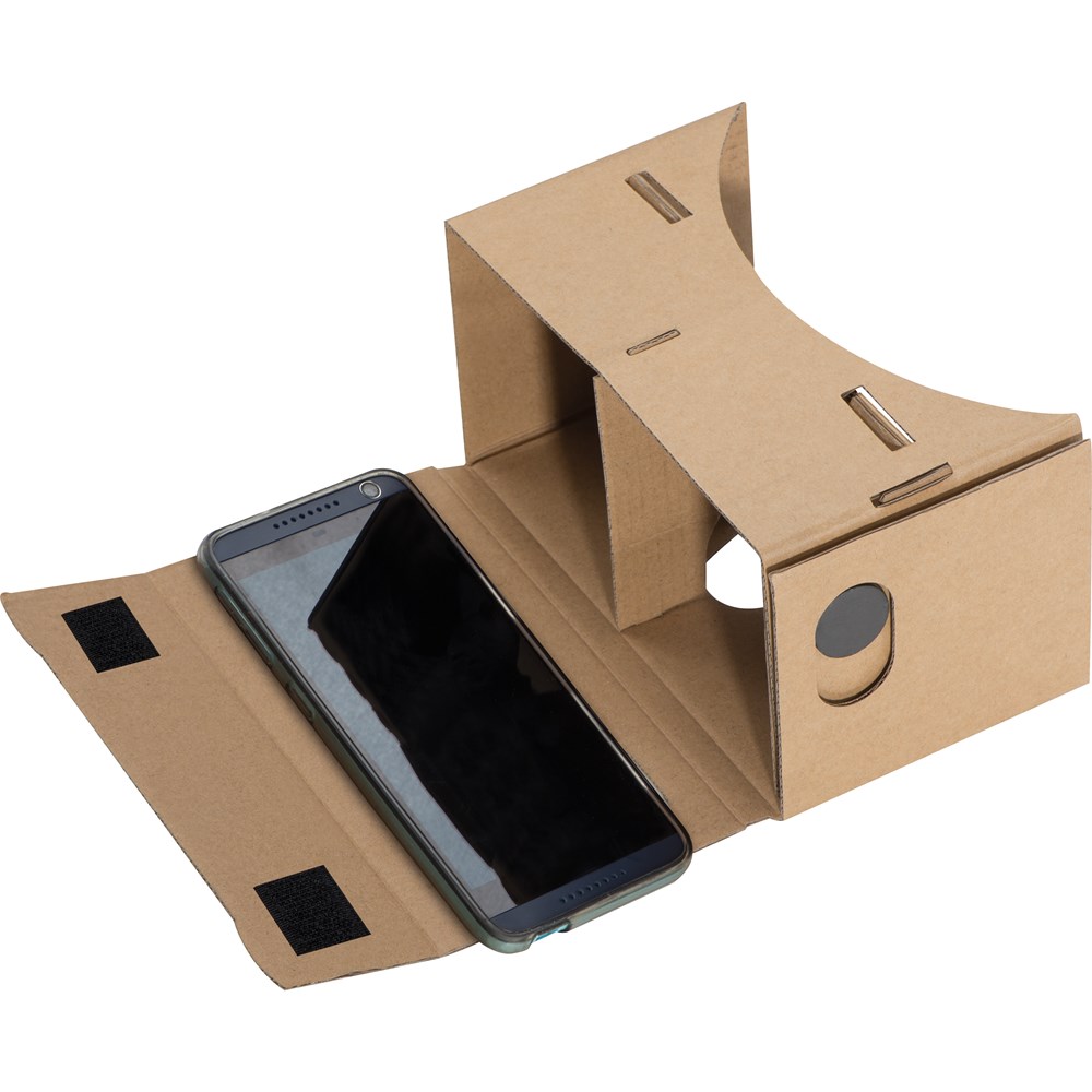 Virtual Reality Brille aus Karton zum Zusammenbauen, dadurch wird sie zum perfekten Mailingbegleiter. Tauchen Sie mit dieser Brille und einer entsprechenden VR-App auf Ihrem Smartphone in die virtuelle Welt ein. Ihre Werbung wird auf der Brille angebracht.