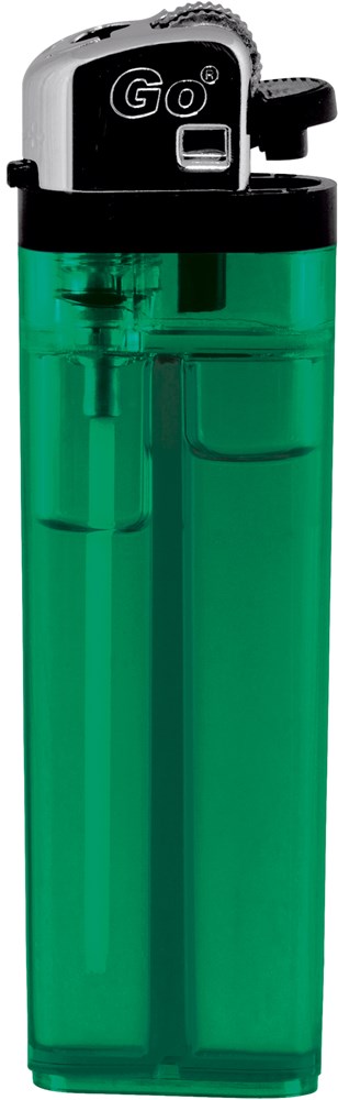 Klassisches, transparentes Reibradfeuerzeug der Marke GO. Qualität und Preis machen diesen Artikel zum perfekten Werbegeschenk.