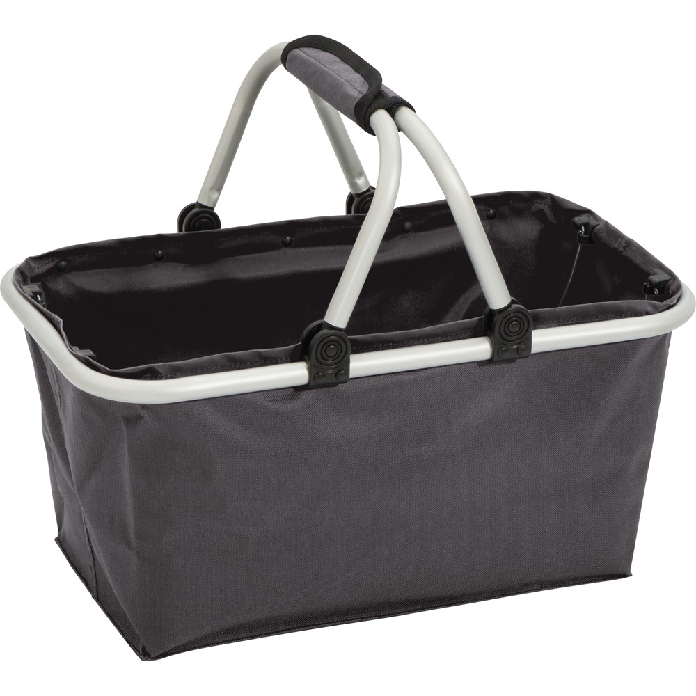Einkaufskorb aus 600D Polyester mit Aluminiumgestänge in verschiedenen Farben. Ihre Werbung drucken wir auf eine Seite des Korbes.