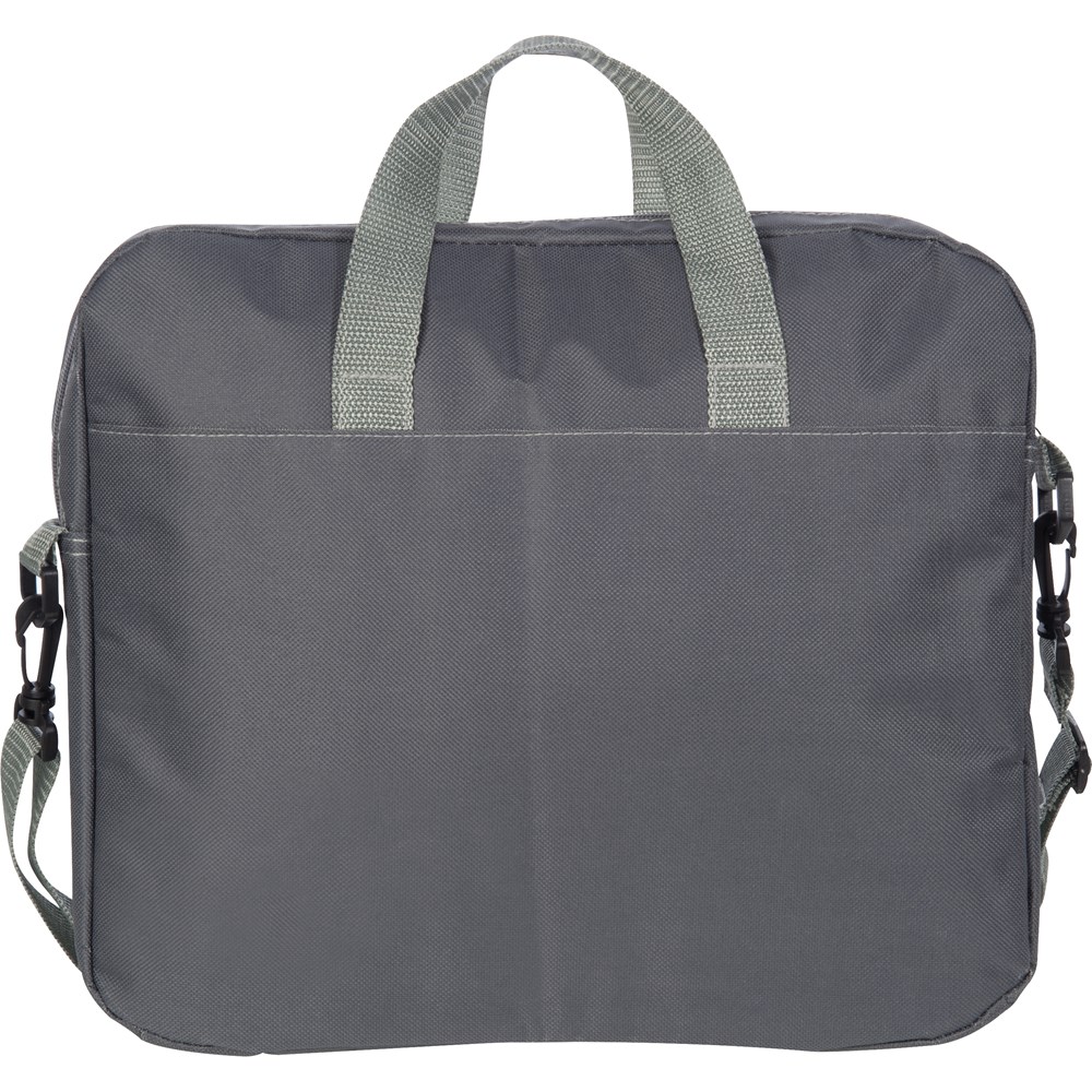 Graue Laptoptasche aus 600D Polyester mit knalligen Farbakzenten, einem geräumigen Innenfach... mehr