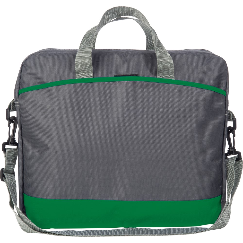 Graue Laptoptasche aus 600D Polyester mit knalligen Farbakzenten, einem geräumigen Innenfach... mehr