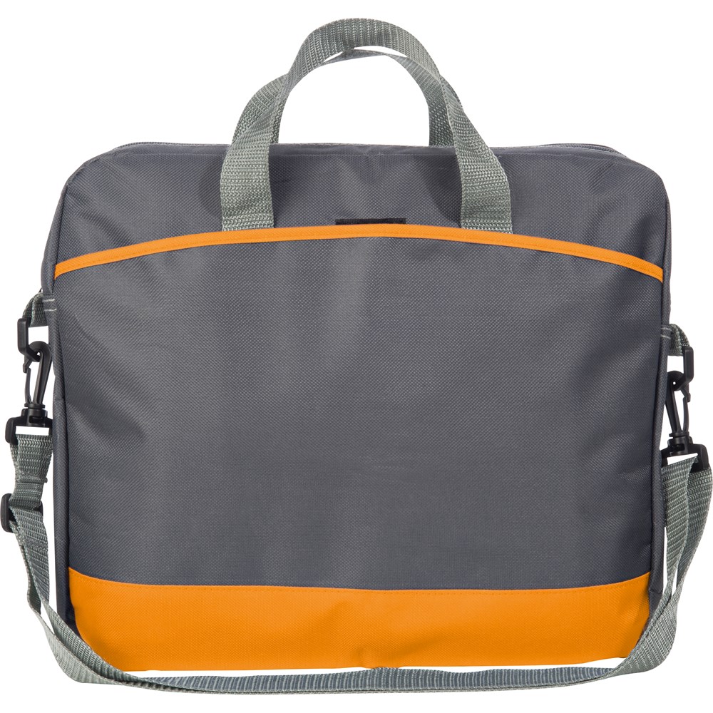 Graue Laptoptasche aus 600D Polyester mit knalligen Farbakzenten, einem geräumigen Innenfach... mehr