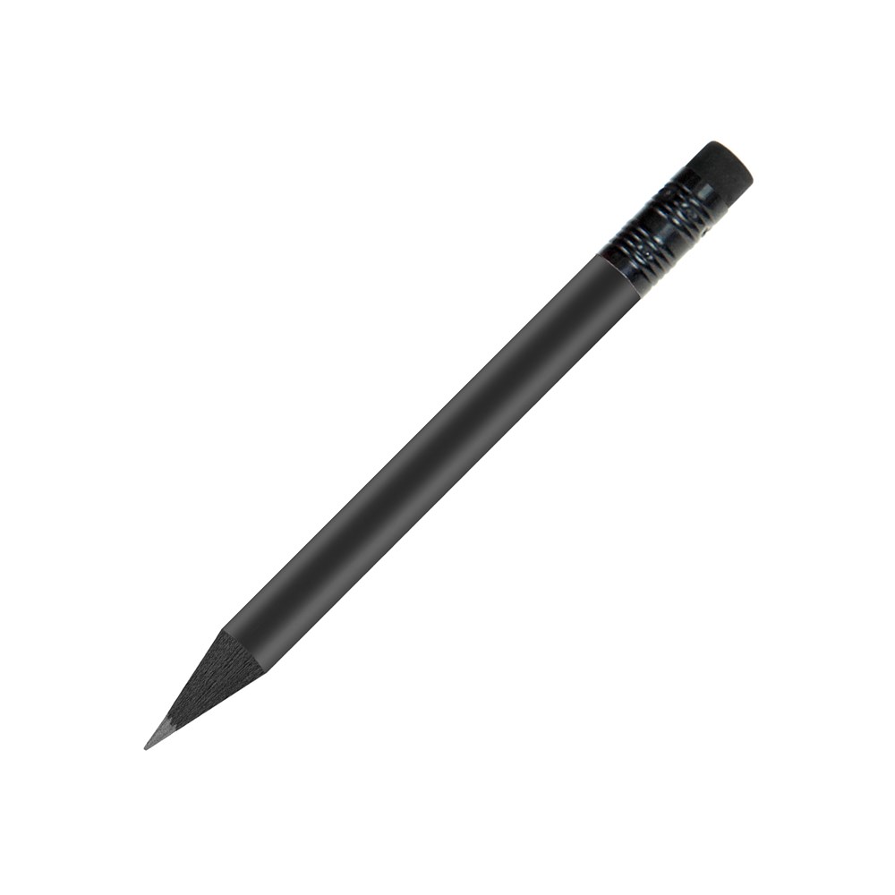 schwarz gefärbter Bleistift, lackiert, mit Radiergummi, rund, kurz