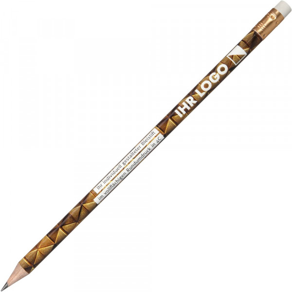 Bleistift, rund, gespitzt, ca. 185 mm lang, Ø ca. 7 mm, Radierer in weiss, Metallhülse in gold, Mine HB, inkl. 360° Vollfarbdruck in Fotoqualität über die gesamte Länge, inkl. Drucknebenkosten, finanzieller Klimabeitrag