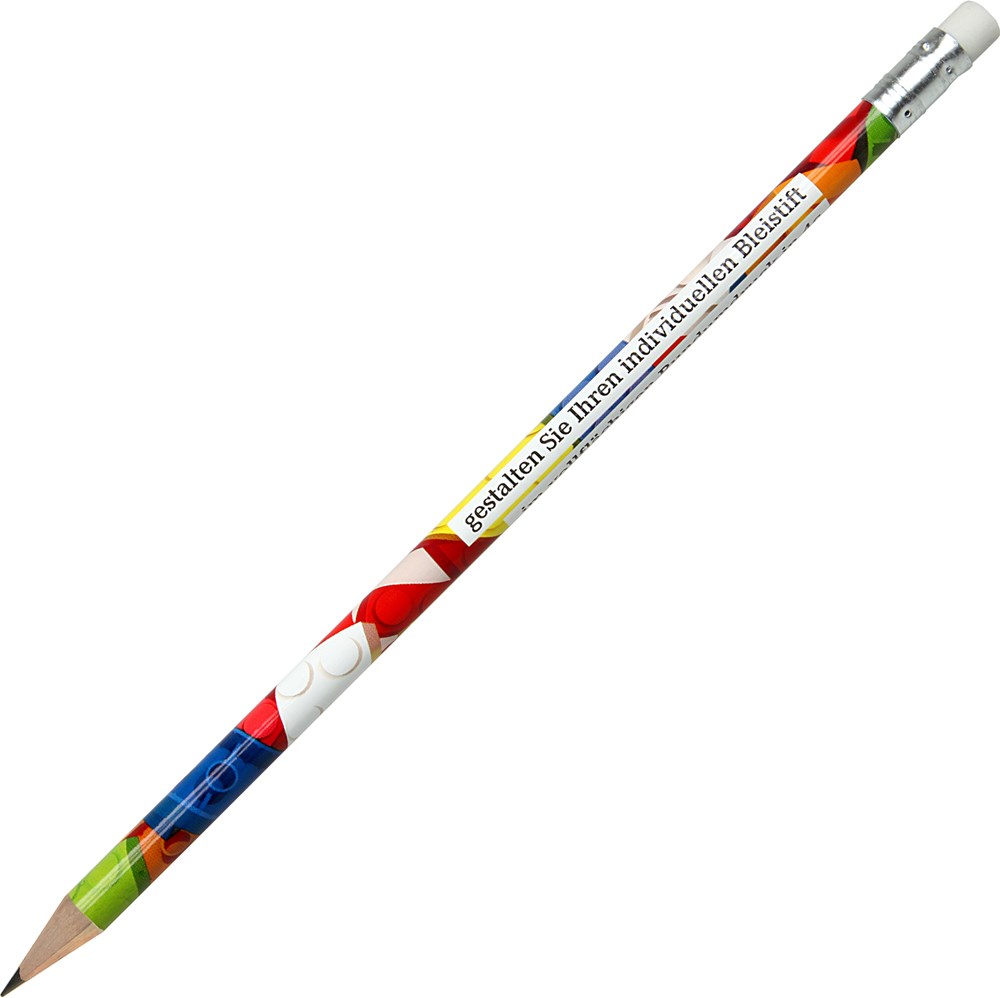 Bleistift, rund, gespitzt, ca. 185 mm lang, Ø ca. 7 mm, Radierer in weiss, Metallhülse in silber, Mine HB, inkl. 360° Vollfarbdruck in Fotoqualität über die gesamte Länge, inkl. Drucknebenkosten, finanzieller Klimabeitrag