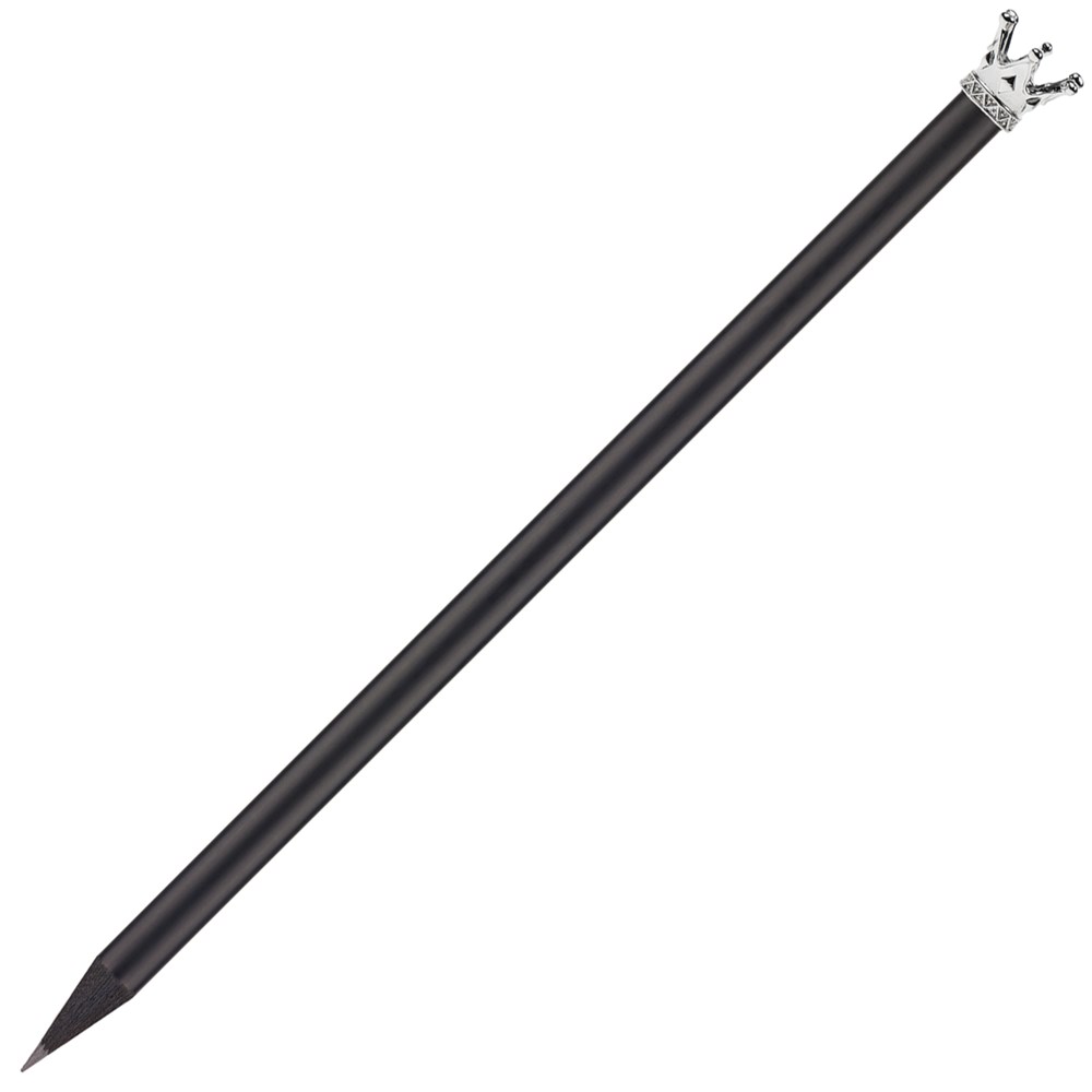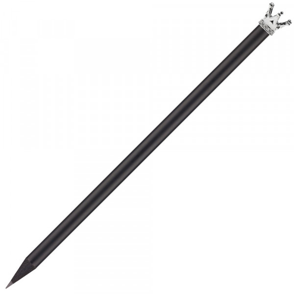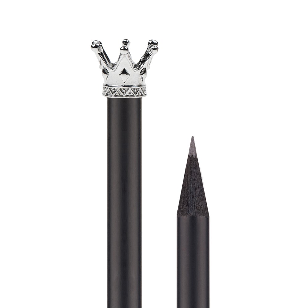matt schwarzer "Royaler" Bleistift mit metallener Märchenkrone in silber, schwarz durchgefärbtes Holz, 19 cm, gespitzt, FSC® zertifiziert, Mine HB, finanzieller Klimabeitrag