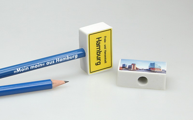 Sie möchten ein Fotomotiv oder einen großflächigen Text auf den Radierertopper drucken? Dann bietet die rechteckige Form den optimalen Platz. Postkartenmotive oder Wort-Bildmarken, die viel Platz brauchen um zu wirken passen perfekt auf den rechteckigen Radierer.