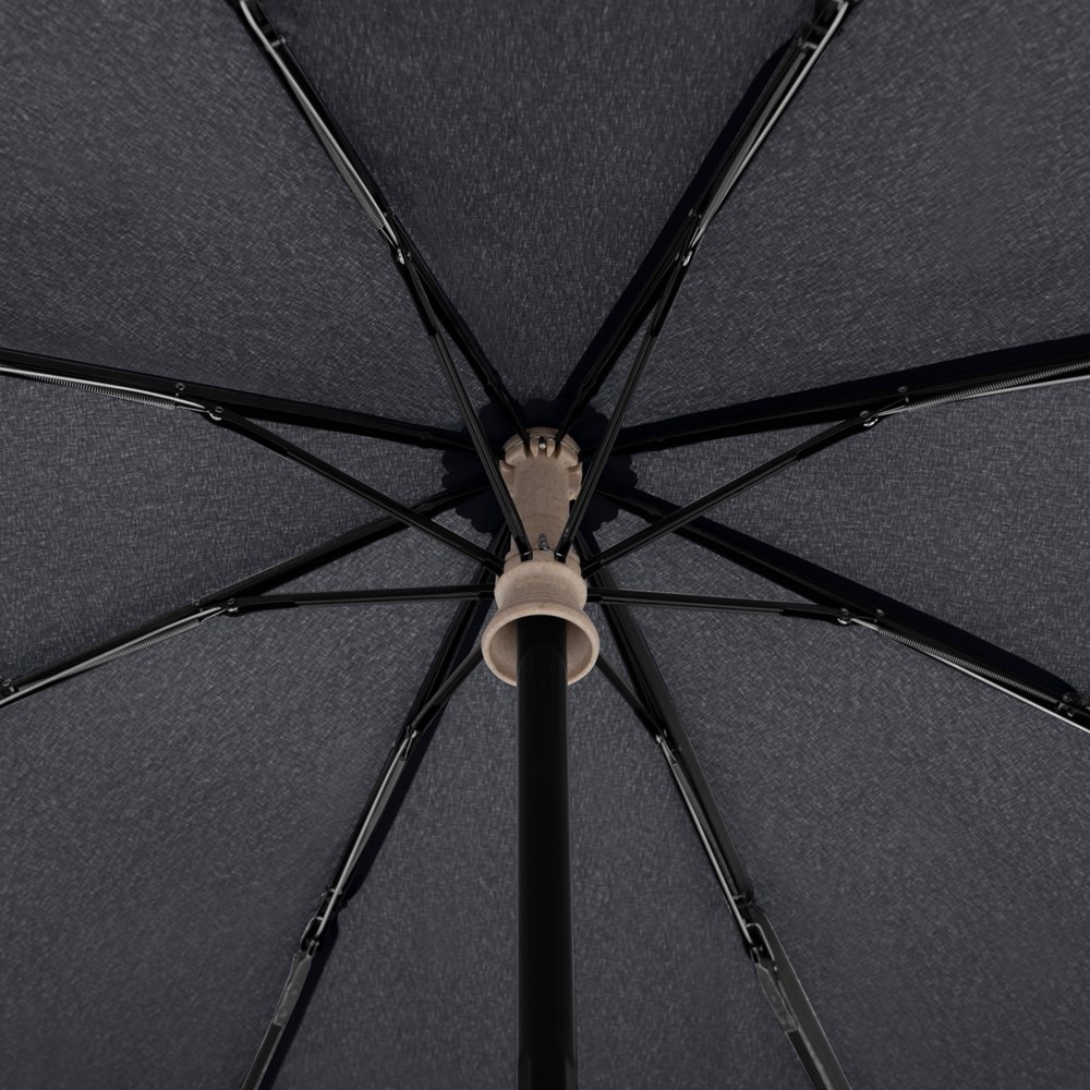 Material: Schirmdach aus recyceltem PET, PFC frei, 3tlg. Stahlstock, 3tlg. Schiene aus Stahl und Fiberglas, Griff aus biologisch abbaubarem Biokunststoff