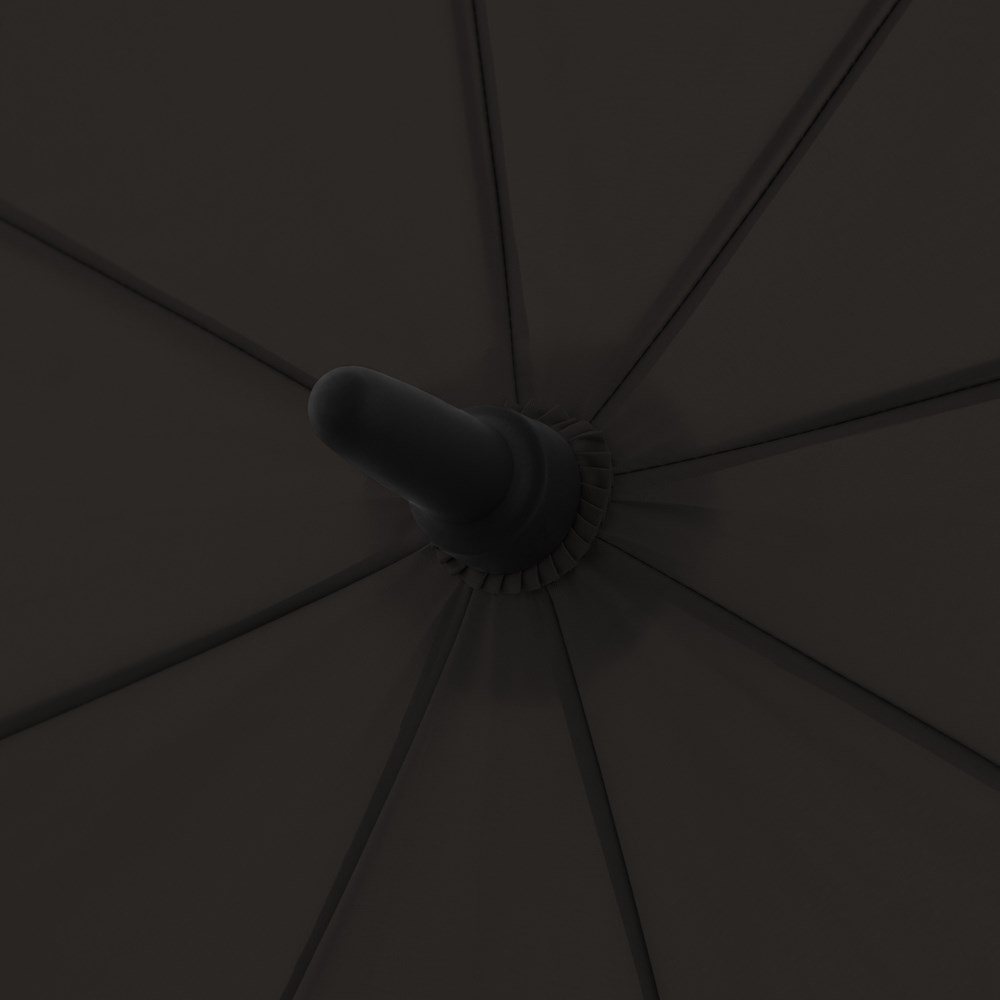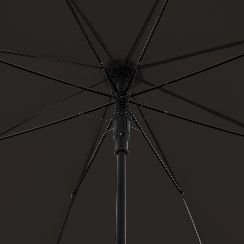 Material: Pongee, Stahlstock, Fiberglasschienen, mattschwarzer Rundhakengriff
