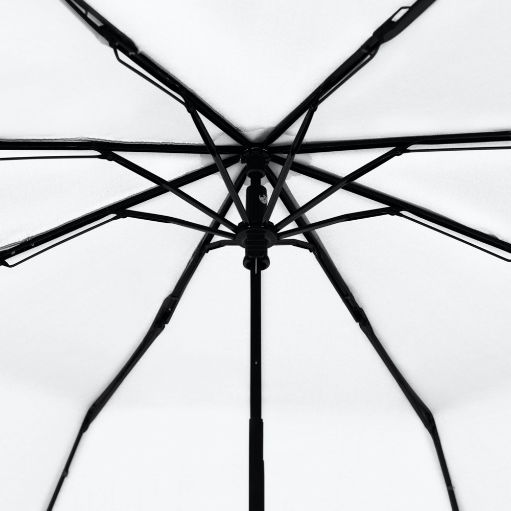 Material: Polyester Pongee, schwarzer Stahlstock, Fiberglas-Teilschienen, mattschwarzer Kunststoffgriff