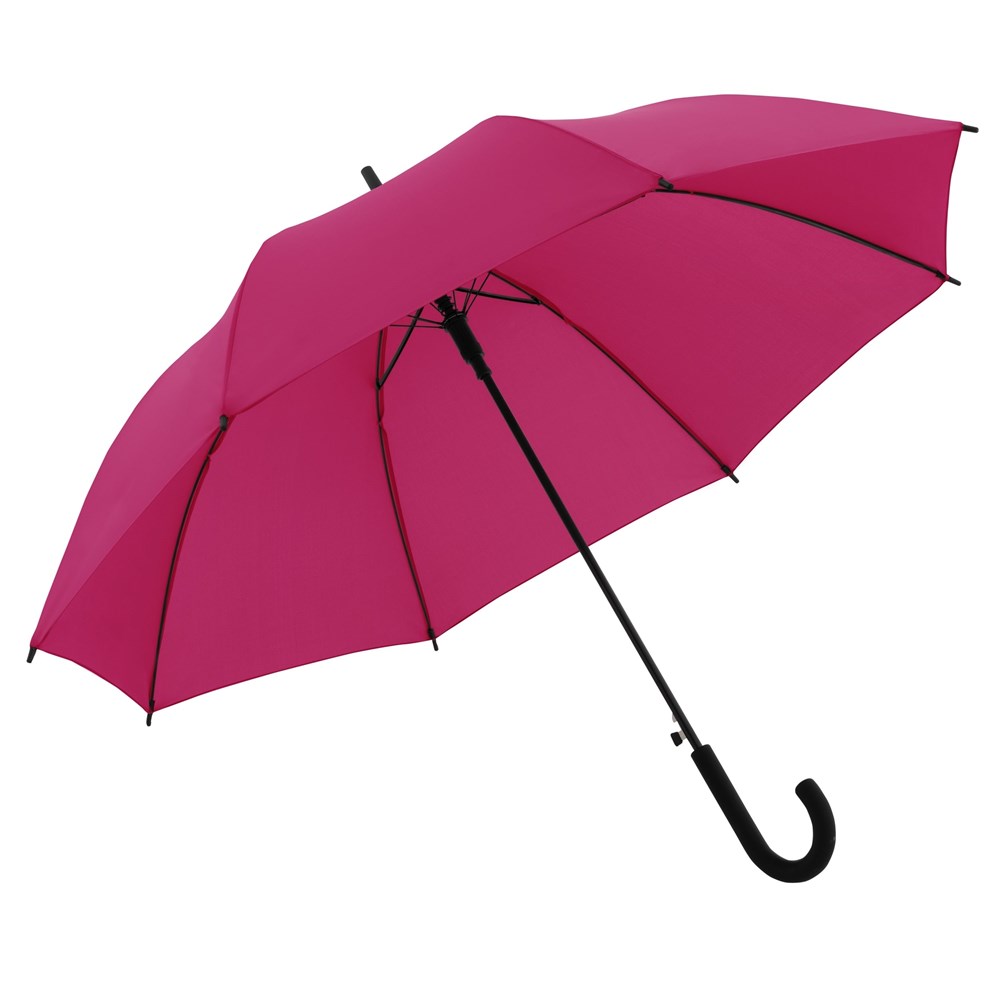 Preiswerter Stockschirm mit Automatikfunktion und schwarzem Rundhakengriff. Der Trend Stick ist bei perfektem Preis-Leistungsverhältnis mit Fiberglasschienen ausgestattet und außerdem Windproof.