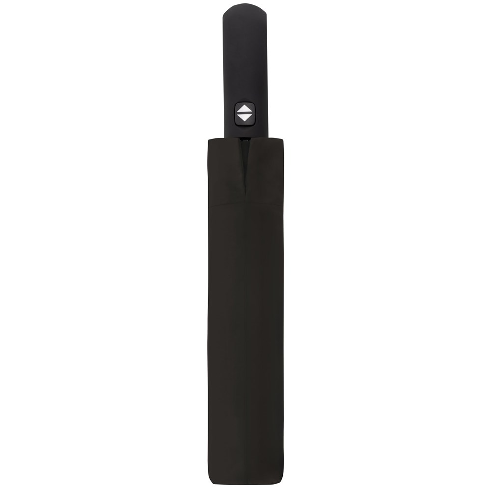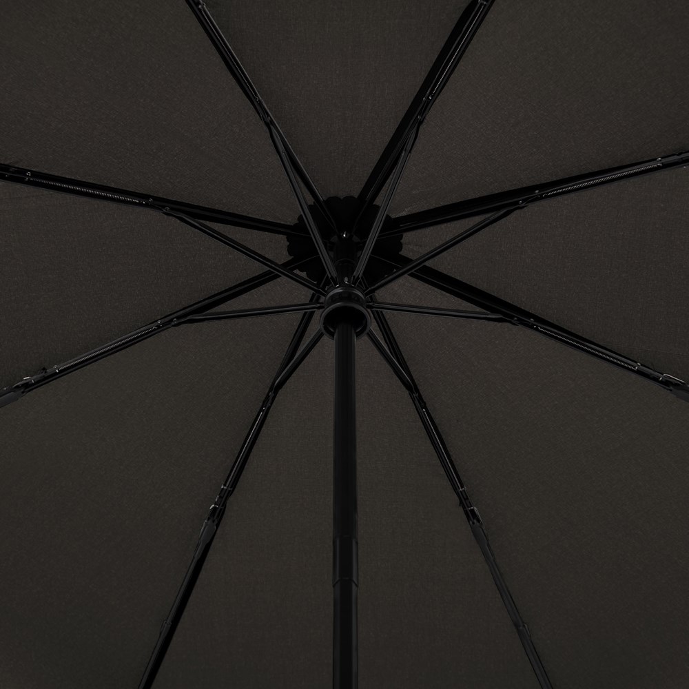 Polyester Pongee, schwarzer Stahlstock, Fiberglas-Teilschienen, mattschwarzer Kunststoffgriff mit integrierter Drucktaste