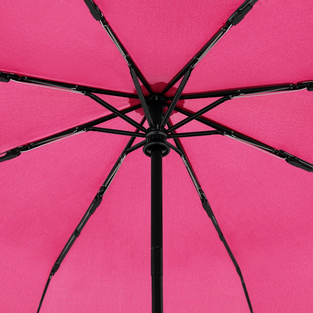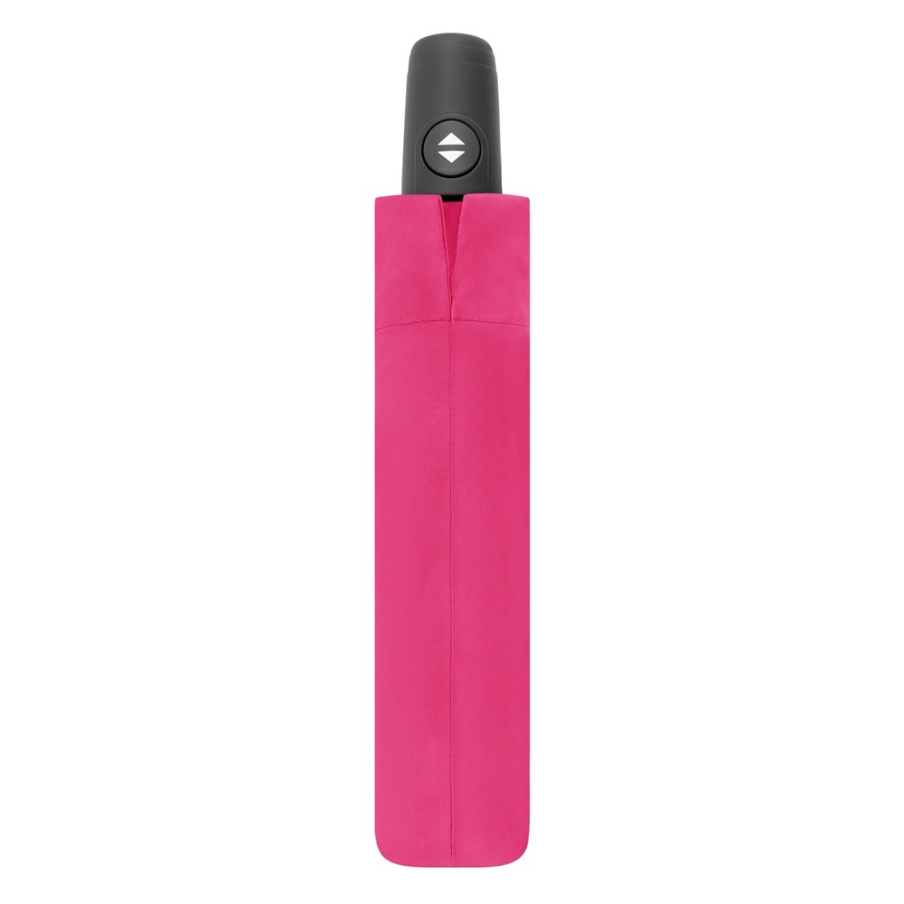Dieser windsichere Schirm (getestet bis 100 km/h) überzeugt mit einem hervorragenden Preis-Leistungs-Verhältnis und komfortabler Auf-/Zu-Automatik. Mit seinen 8 Segmenten bietet er ideale Werbeflächen für Ihre Markenbotschaft. Eine farblich abgestimmte Hülle und der mattschwarze Griff mit praktischer Trageschlaufe runden das Modell stilvoll ab.