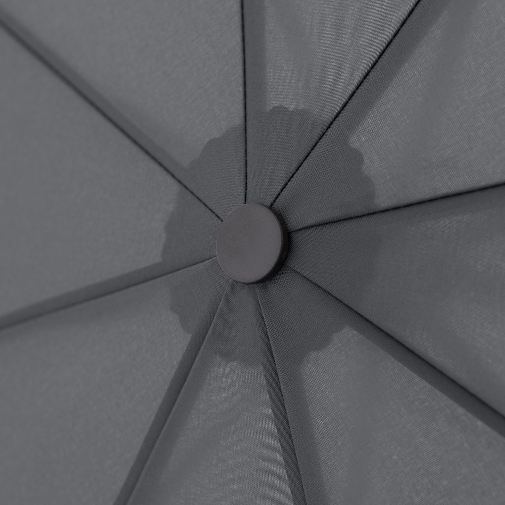 Polyester Pongee, schwarzer Stahlstock, Fiberglas-Teilschienen, mattschwarzer Kunststoffgriff mit integrierter Drucktaste