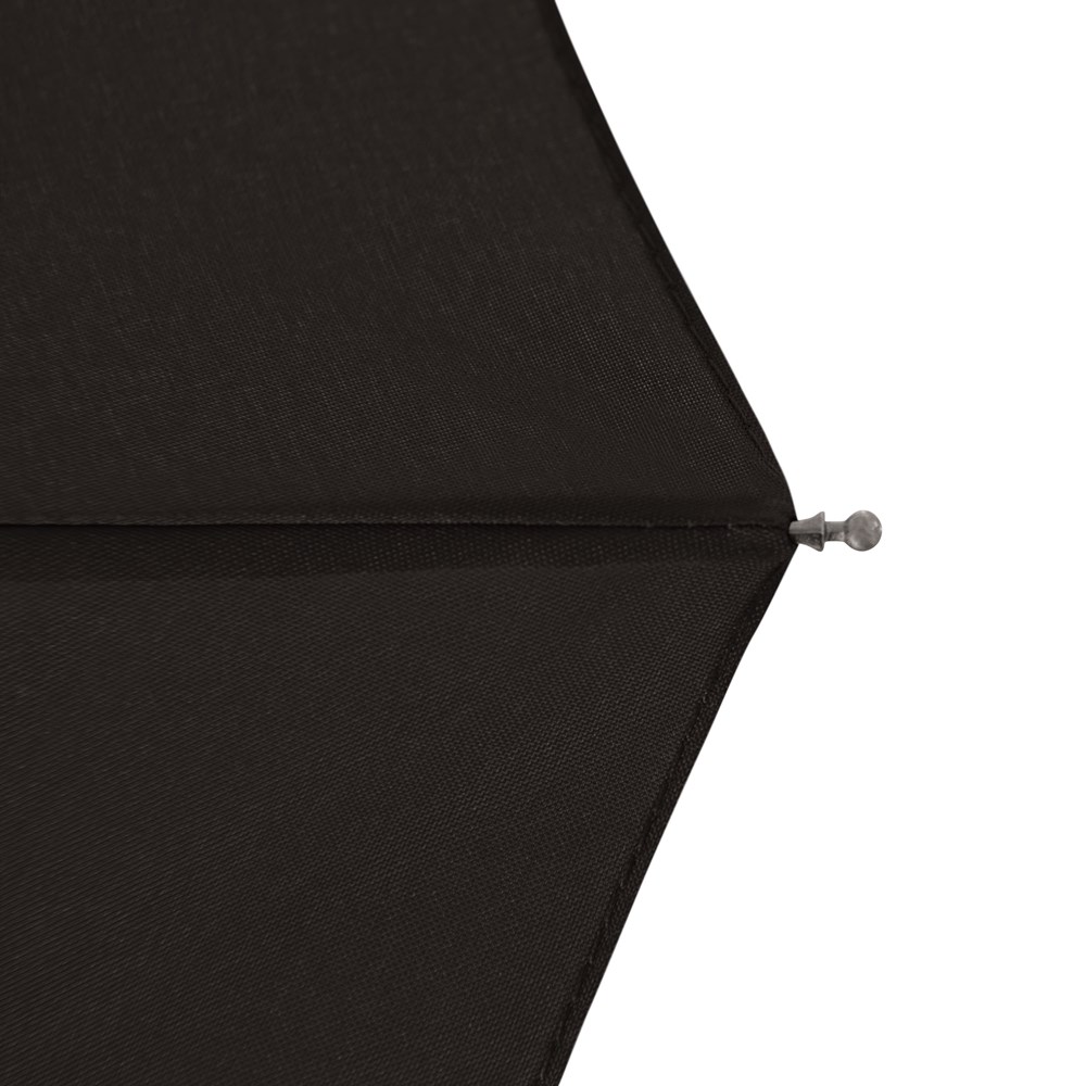 Polyester Pongee, schwarzer Stahlstock, Fiberglas-Teilschienen, mattschwarzer Kunststoffgriff mit integrierter Drucktaste