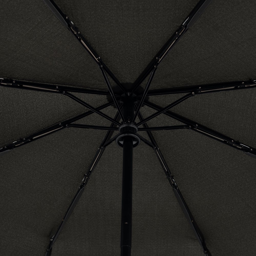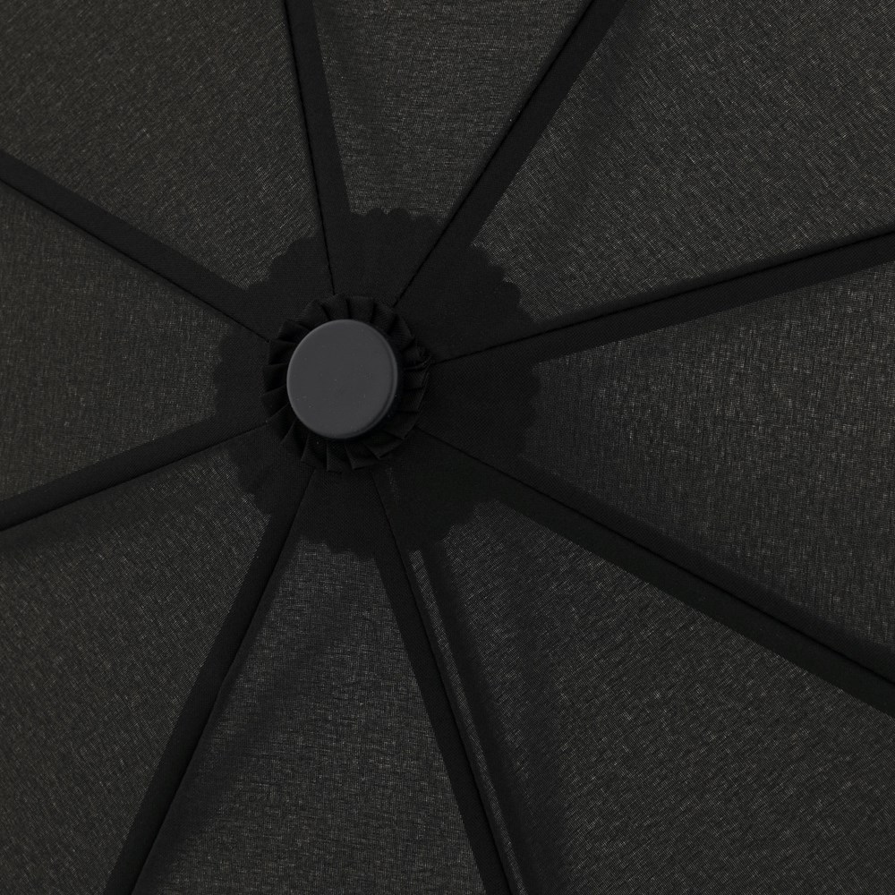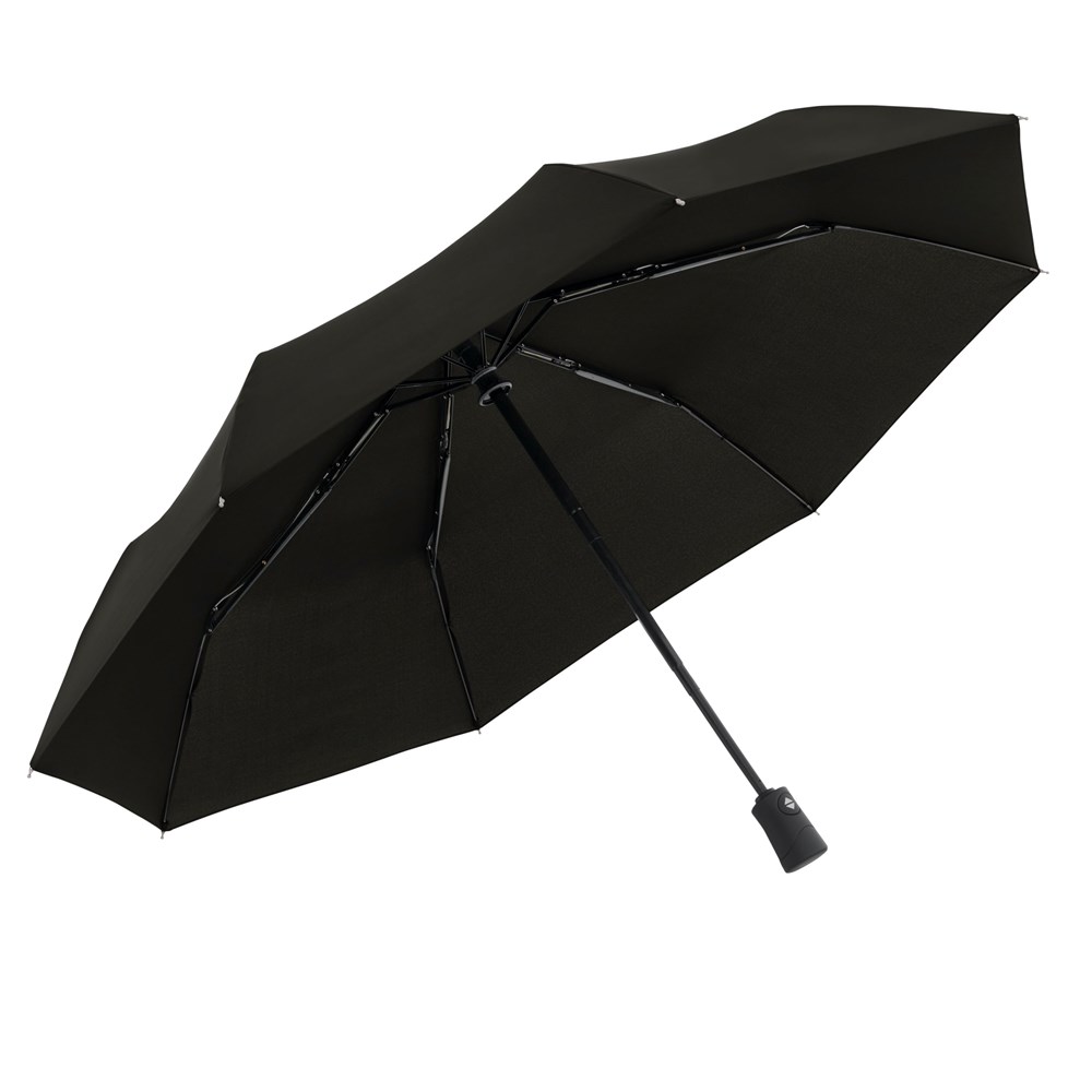 Polyester Pongee, Stahlstock, Fiberglas-Teilschienen, mattschwarzer Kunststoffgriff mit integrierter Auslösetaste