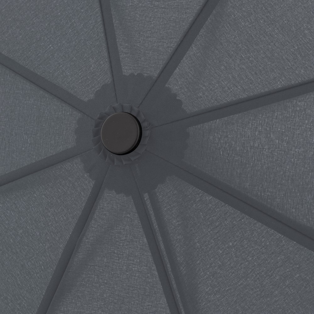 Material: Polyester Pongee, Stahlstock, Fiberglas-Teilschienen, mattschwarzer Kunststoffgriff mit integrierter Auslösetaste