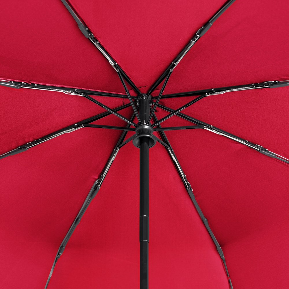 Polyester Pongee, Stahlstock, Fiberglas/Alu-Teilschienen, mattschwarzer Kunststoffgriff mit integrierter Auslösetaste, mattschwarzer Kunststoffgriff mit integrierter Drucktaste