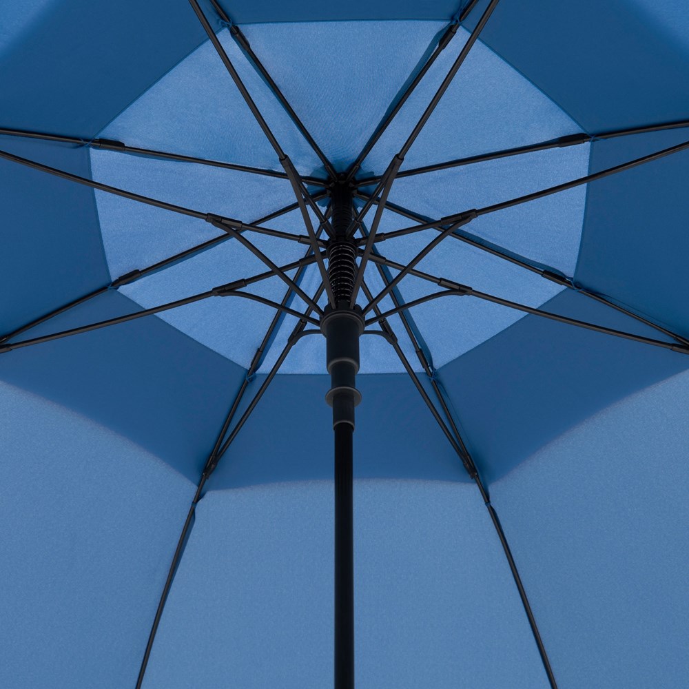 Nobler Automatik-Golfschirm für zwei Personen mit Windventil für maximale Windsicherheit – selbst bei starkem Wind. Das extragroße Schirmdach mit einem Durchmesser von 137 cm bietet großzügigen Schutz und lässt niemanden im Regen stehen. Der Oversize-Schirm besteht aus leichtem Fiberglas, der gummierte Stabgriff sorgt für optimalen Halt und Komfort.