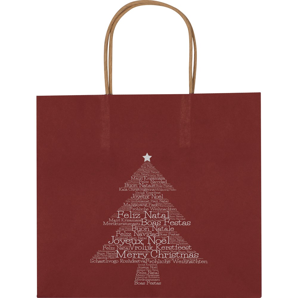 Unsere kompakte Weihnachtstasche aus recyceltem Papier ist die ideale Verpackungslösung für kleine Geschenke und Aufmerksamkeiten in der Weihnachtszeit. Das weihnachtliche Motiv verleiht der Tasche einen festlichen Charme, während die robuste Verarbeitung für Stabilität sorgt. Die Rückseite bietet eine optimale Fläche für Ihre individuelle Werbebotschaft.