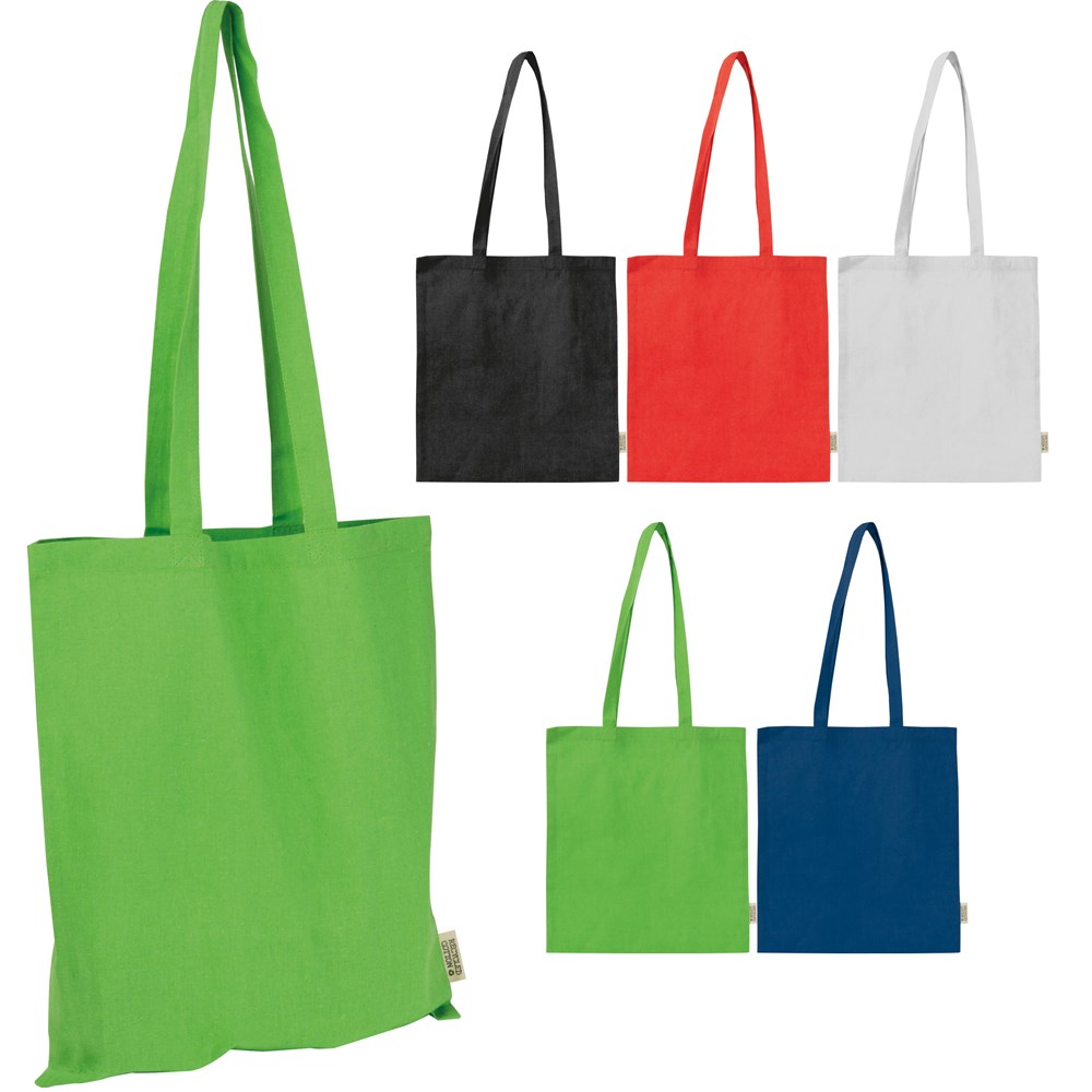Unsere Baumwolltasche aus 75% recycelter Baumwolle und 25% RPET vereint robuste Qualität mit praktischer Funktionalität. Mit einer festen Grammatur von 180 g/m² ist die Tasche besonders strapazierfähig und eignet sich ideal für den täglichen Einsatz, sei es beim Einkaufen, im Büro oder unterwegs. Die langen Tragehenkel ermöglichen ein bequemes Tragen über der Schulter. Ihre Werbung wird gut sichtbar auf eine Seite gedruckt und sorgt für eine stilvolle Präsentation Ihrer Marke.