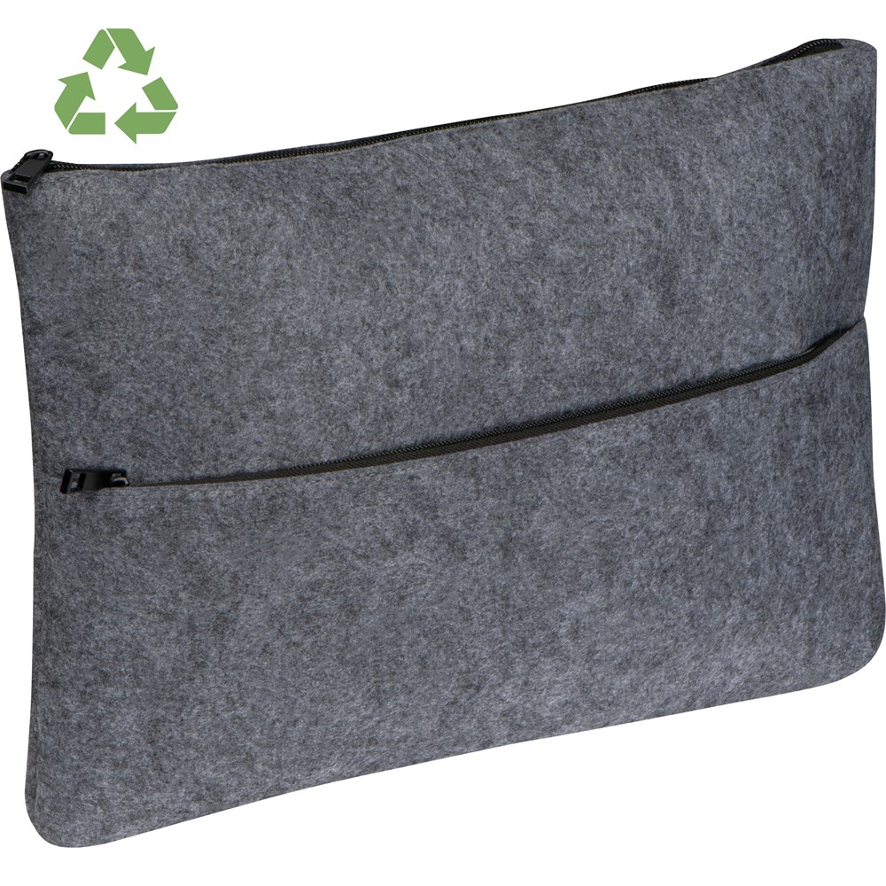 Unsere hochwertigen Dokumententasche aus RPET Filz! Diese Tasche ist nicht nur elegant und funktional, sondern auch perfekt für den sicheren Transport von Laptops geeignet. Mit schwarzen Reißverschlüssen und Ihrer individuellen Werbung auf der Vorderseite wird diese Tasche zu einem stilvollen und personalisierten Accessoire.