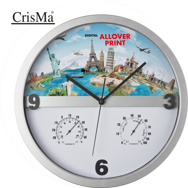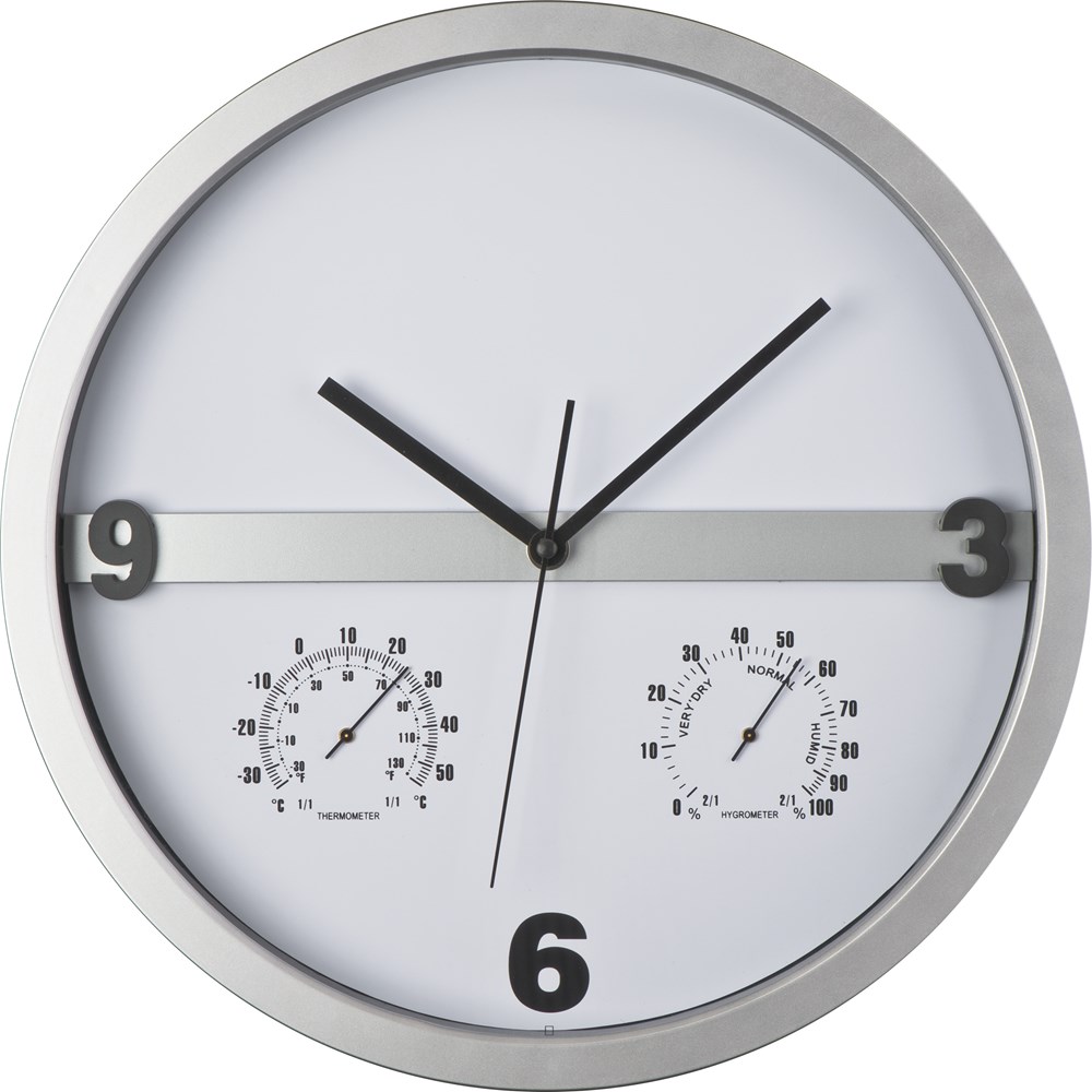 Wanduhr mit Hygro - und Thermometer, halbes Display bedruckbar ERICH