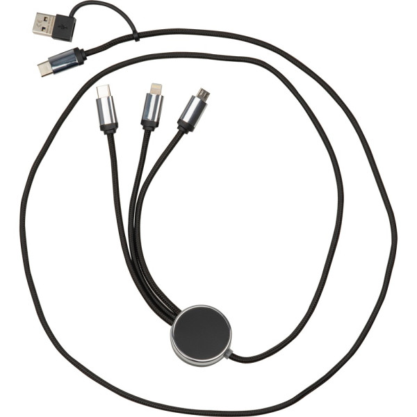 Unser 3-in-1 Ladekabel mit Leuchtfunktion kombiniert vielseitige Anschlüsse und ein innovatives Design. Mit einer Länge von 120 cm bietet das Kabel Flexibilität und ist für eine Vielzahl von Geräten geeignet. Die Anschlüsse umfassen USB-C, Mikro-USB und iOS-Ausgänge sowie USB Typ A und C Eingänge. Die integrierte Leuchtfunktion im runden Plättchen setzt Ihre Gravur während des Ladevorgangs stilvoll in Szene, wodurch Ihre Marke stets ins Blickfeld rückt.