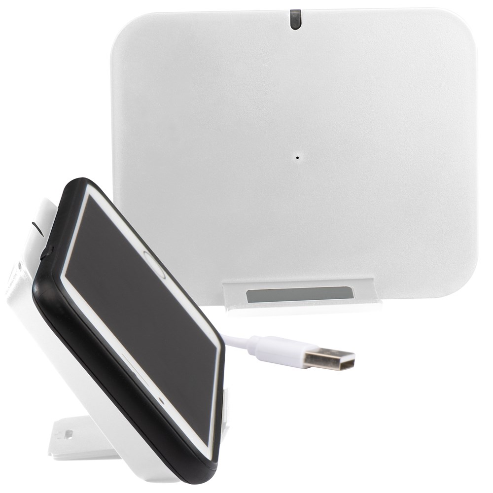Unser Induktionsladegerät aus Kunststoff ist eine bequeme und effiziente Möglichkeit, Ihr Smartphone aufzuladen, ohne dass Sie Kabel benötigen. Dieser Wireless Charger dient gleichzeitig als Ständer für Ihr Smartphone, sodass Sie es während des Ladevorgangs bequem verwenden können.