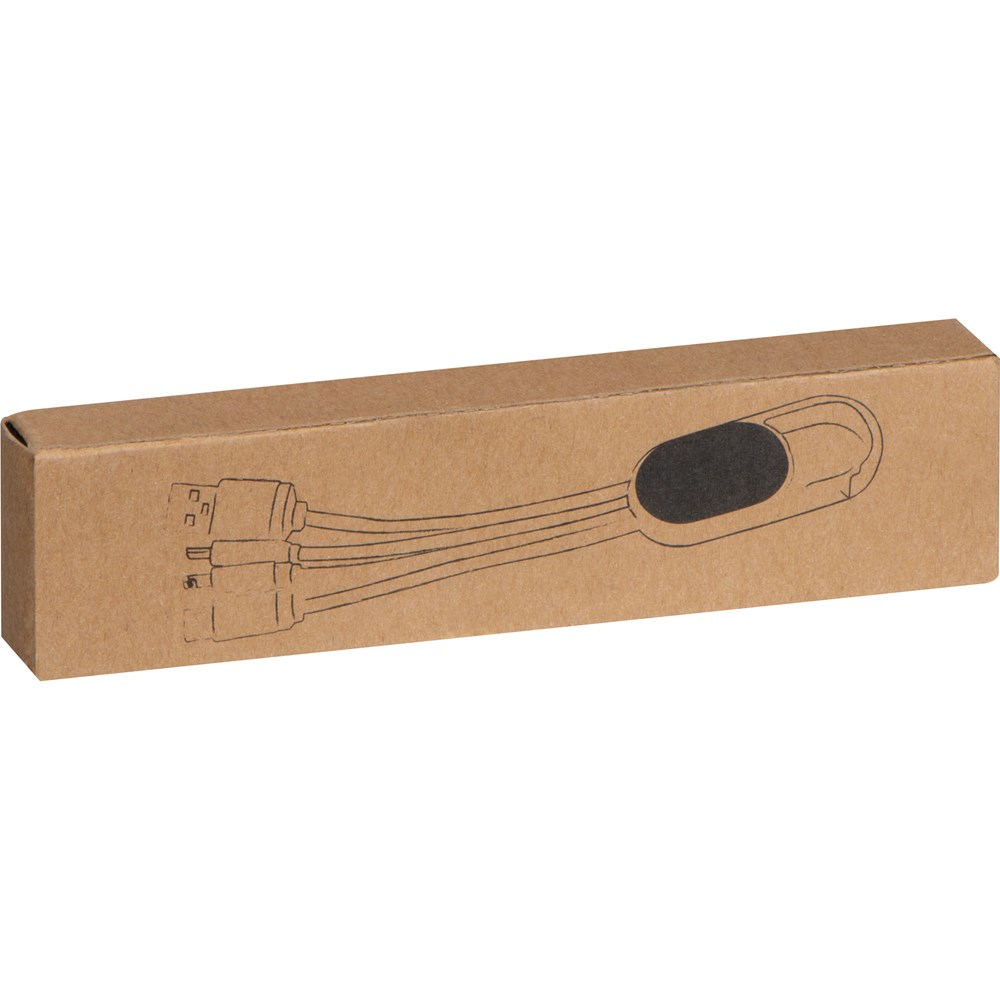 Unser 3-in-1 Ladekabel kombiniert modernes Design mit Vielseitigkeit und Funktionalität. Mit USB-, Micro-USB-, C-Type- und 8-Pin-Steckern ist es kompatibel mit den meisten Smartphones und Tablets. Ihr Logo wird auf die schwarze Fläche des Kabels graviert und leuchtet während des Ladevorgangs, um Ihre Marke hervorzuheben.
