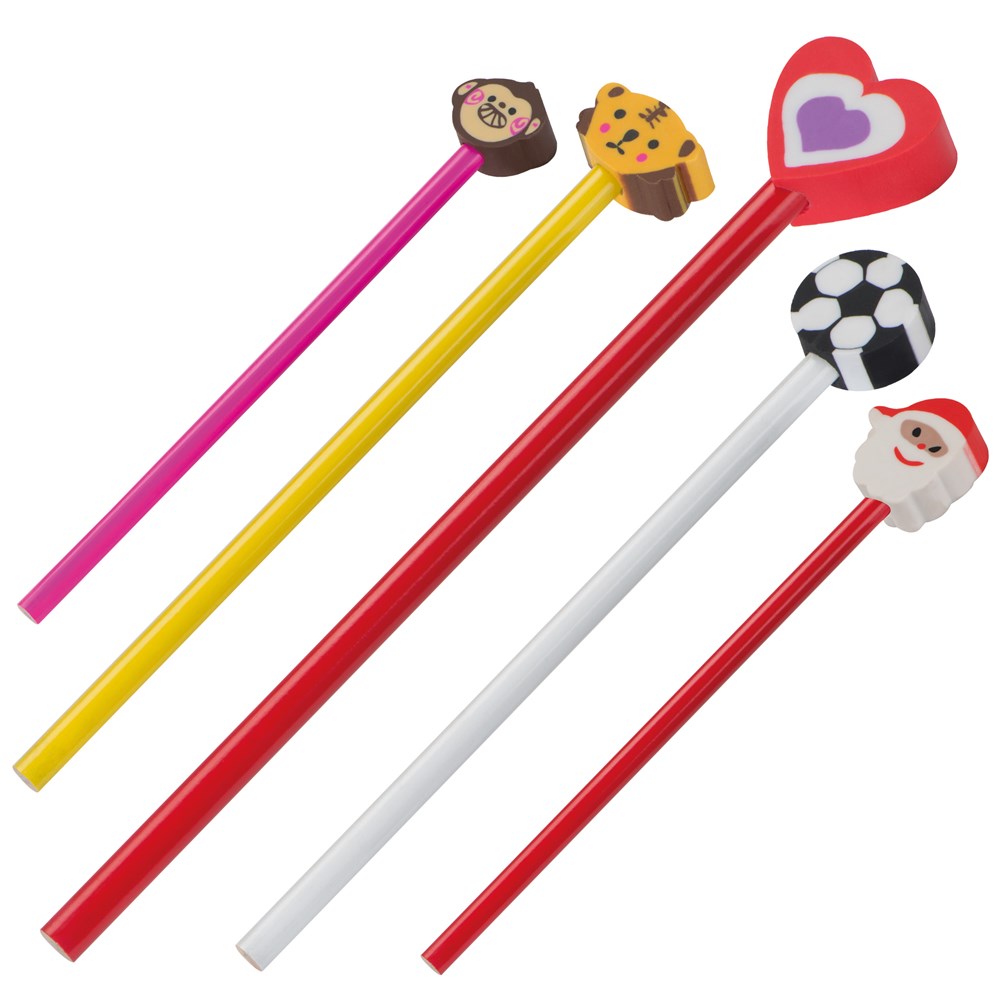 Verschiedene Motive: Die Radiergummiaufsätze sind mit verschiedenen Motiven verziert, was den Bleistift optisch ansprechend und unterhaltsam macht.