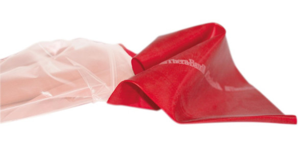 Original Theraband, mit Übungsbroschüre, verpackt in einem nachhaltigen Pergaminbeutel (biologisch abbaubar). Ideal geeignet für intensives Functional-Training. Rot = leichtere Zugkraft