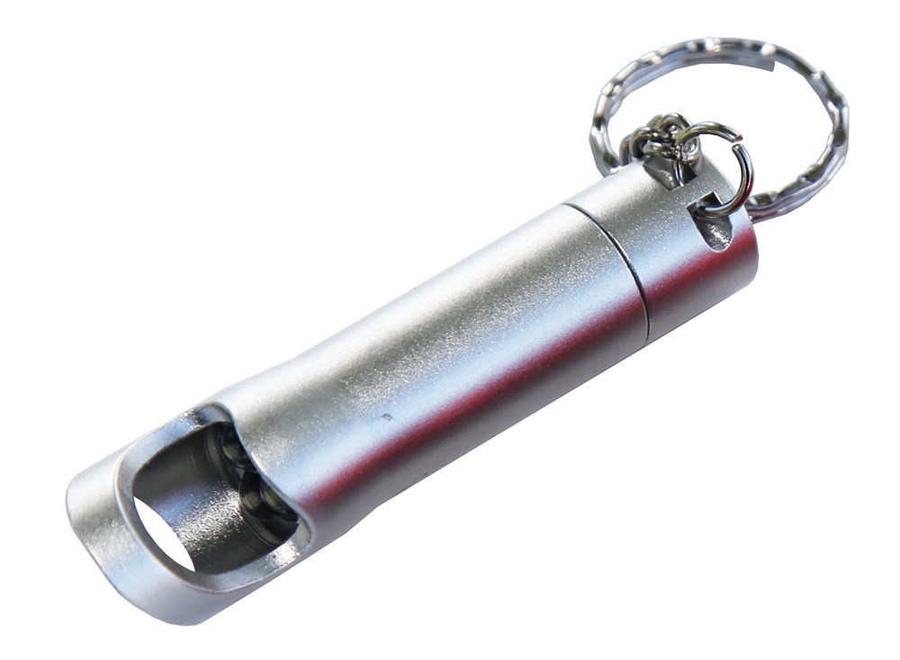 Mini-Taschenlampe aus Aluminium (eloxiert) mit 3 LED's, Flaschenöffner und Schlüsselring. Inkl. Knopfzellenbatterie AG13 (3 Stück).