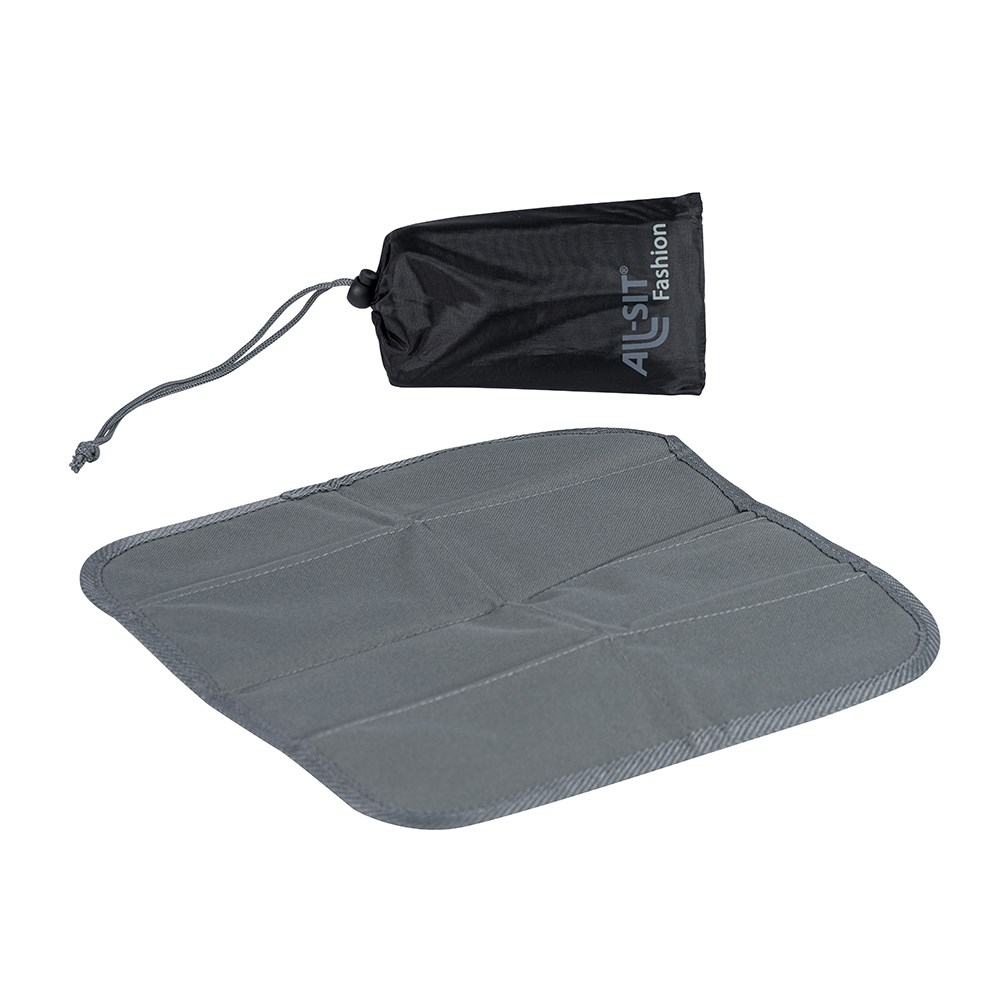 Faltbares Sitzkissen aus Polyester 600D mit Thermo-Isolierfolie auf der Unterseite, die vor Nässe und Kälte schützt. Zum Produkt gehört ein schwarzer Polyesterbeutel mit zum Kissen farblich passendem Kordelzug, in welchem das gefaltete Kissen aufbewahrt werden kann. Die Werbeanbringung kann auf dem Sitzkissen und/oder auf dem Beutel erfolgen.