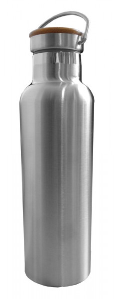 Thermo-Trinkflasche aus Edelstahl 304 mit Schraubdeckel in Bambusoptik, doppelwandig & vakuumisoliert, hält Getränke warm oder kalt, Inhalt 750 ml