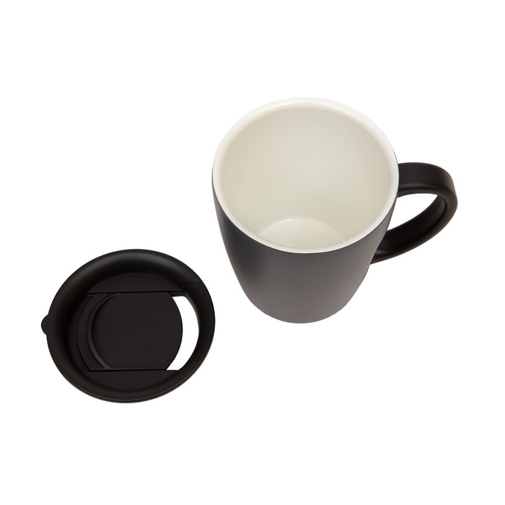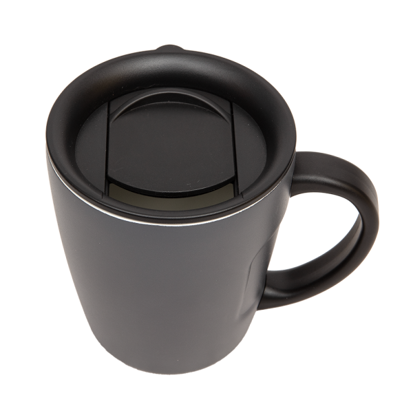 Doppelwandiger und vakuumisolierter Trinkbecher 360ml aus Edelstahl S304 mit Henkel und Schiebedeckel. Die Innenseite des Bechers ist mit einer Keramikschicht überzogen und sorgt so für ein angenehmes Trinkgefühl. Der Becher erfüllt alle berufsgenossenschaftliche Voraussetzungen, um auch in Zerspanungsbetrieben in der Fertigung als Kaffeebecher verwendet werden zu dürfen.