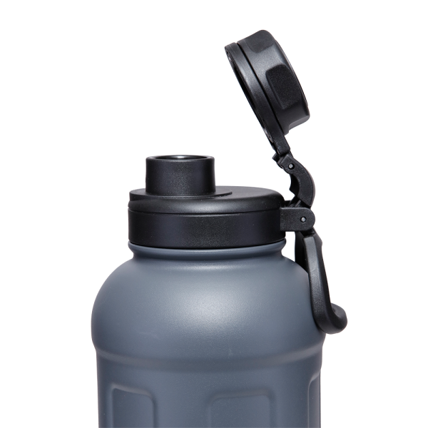 Stylische doppelwandige und auslaufsichere Isolierflasche aus robustem Edelstahl S304 mit BPA-freiem Kunststoffverschluss und integriertem Tragehenkel. Die Flasche ist spülmaschinengeeignet. Inhalt: 1.500 ml