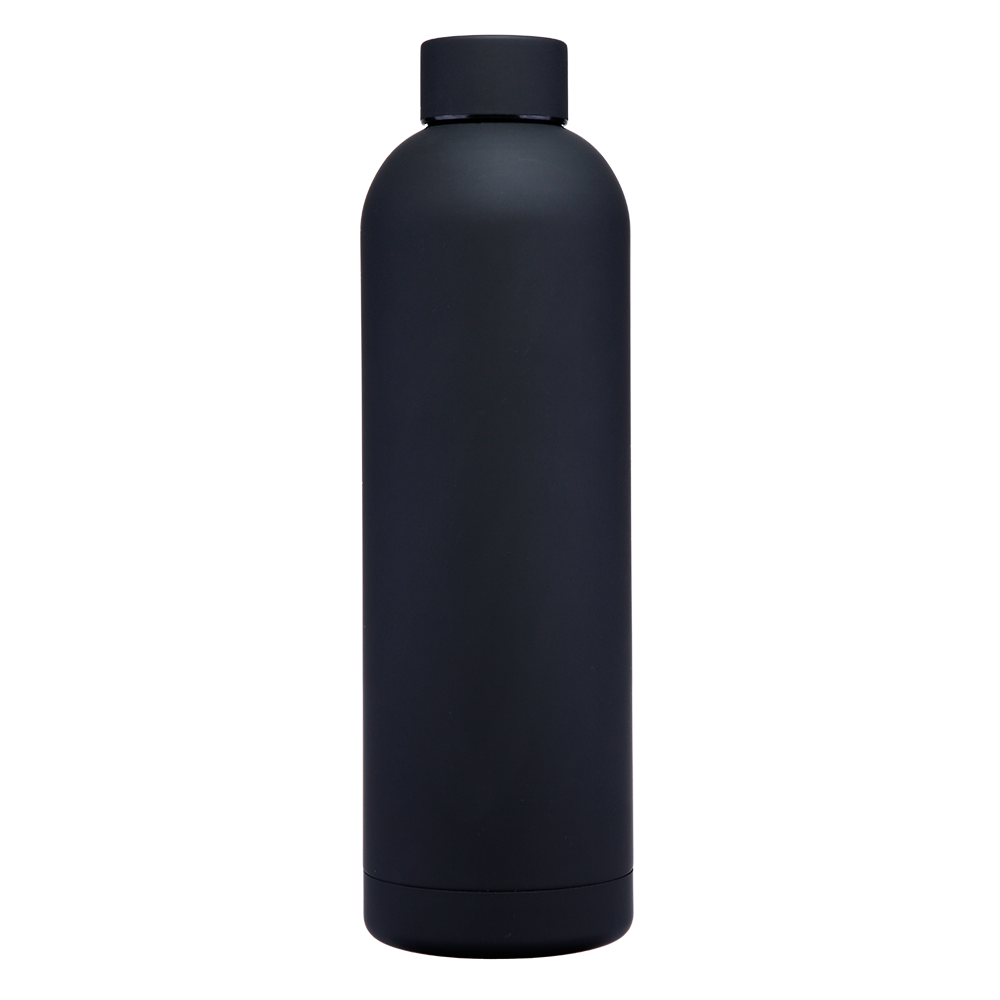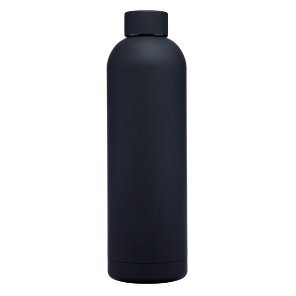 Doppelwandige und auslaufsichere Vakuum-Isolierflasche aus robustem Edelstahl mit gummierter Lackierung. Inhalt: 750 ml