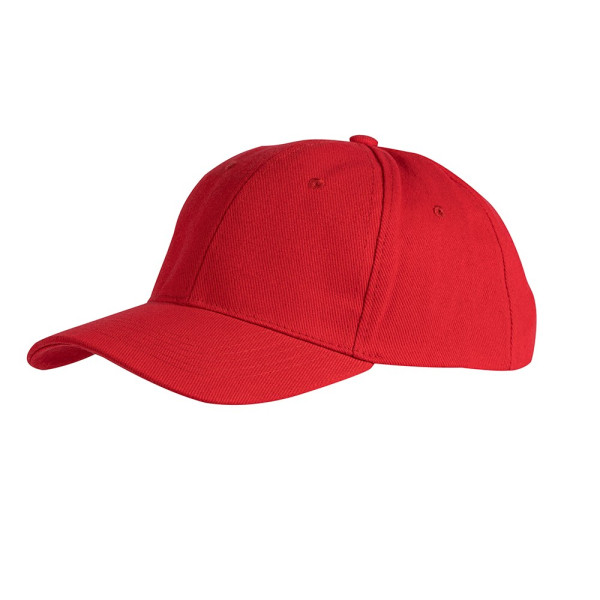 6-Panel Baumwoll-Cap (schwer gebürstete Baumwolle) mit verstärkter Frontpanel, gebogenem Schild, sowie verstellbarem Verschluss mit Metallschnalle