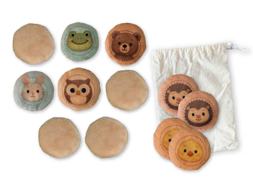 Mein erstes Suchspiel - rPET Plüscholino ist ein weiches Merk- und Pärchenspiel für Kinder ab 2 Jahren. Mit 12 kuscheligen Plüsch-Spielsteinen lernen Kinder spielerisch, passende Tierpaare zu finden. Dabei werden Konzentration, Gedächtnis und erstes Regelverständnis gefördert – ganz ohne Druck, aber mit viel Freude am Entdecken.